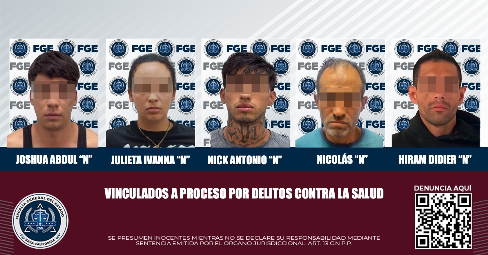 TIJUANA, B.C. En audiencias de vinculación realizadas por separado, cinco imputados por delitos contra la salud en su modalidad de narcomenudeo, quedaron sujetos a proceso, informó la Fiscalía General del Estado.