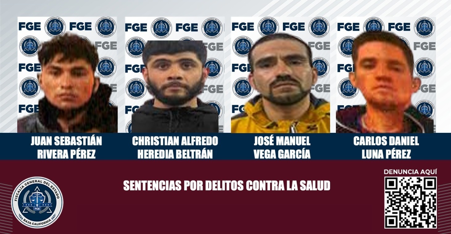 TIJUANA, B.C. En cuatro diferentes casos, un número igual de imputados recibieron sentencia por su responsabilidad en delitos contra la salud, de acuerdo a la Fiscalía Especializada en Narcomenudeo de la Fiscalía General del Estado.