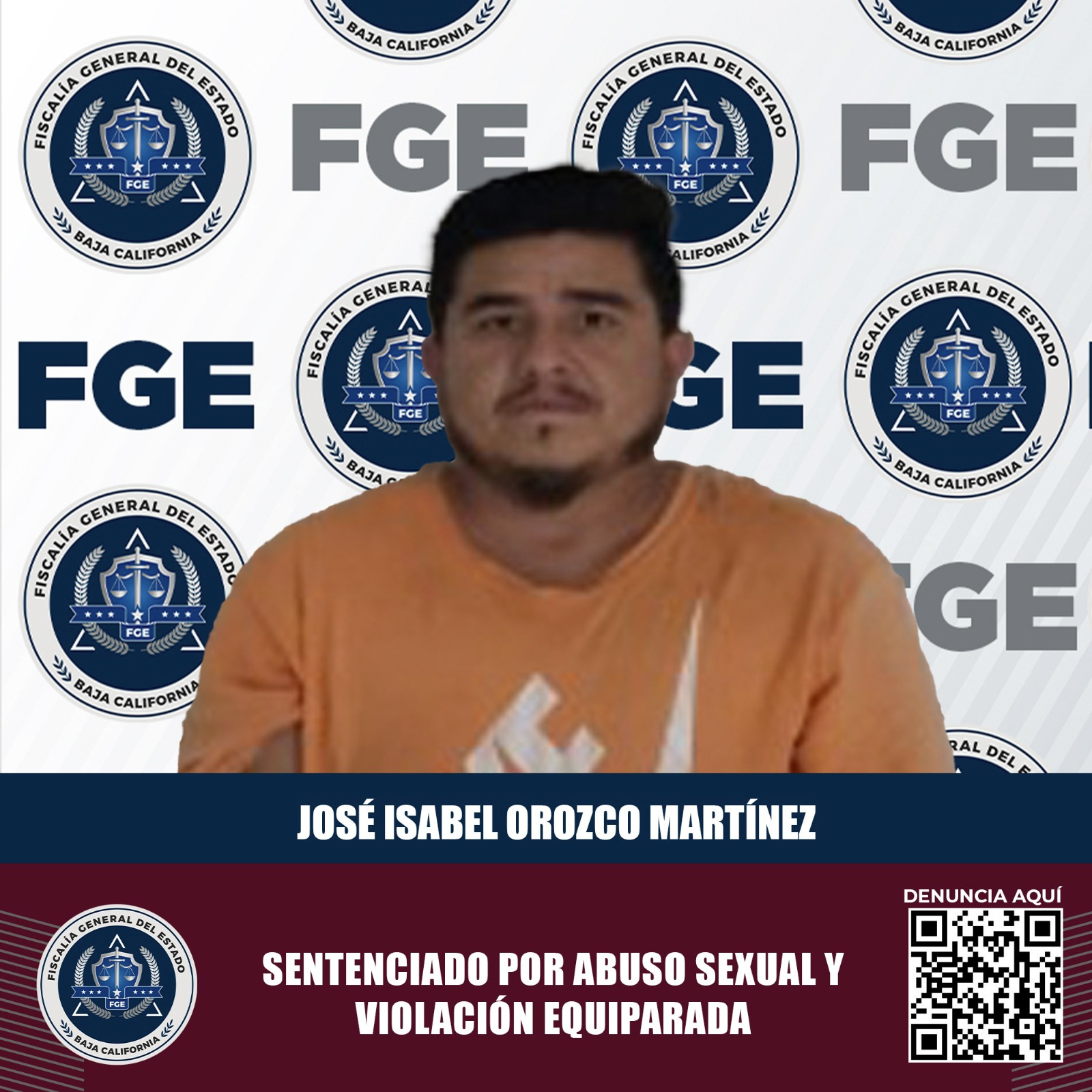 MEXICALI, B.C. Por los delitos de abuso sexual y violación equiparada agravada, la Fiscalía General del Estado (FGE), logró una sentencia condenatoria de 14 años de prisión en contra de José Isabel Orozco Martínez.