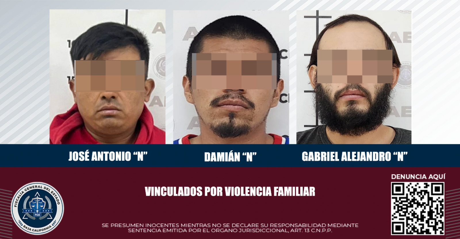 FGE vincula a tres individuos por violencia familiar en San Quintín