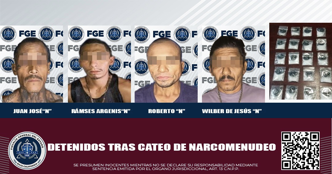 MEXICALI, B.C. Elementos de la Fiscalía General del Estado (FGE), ejecutaron dos cateos logrando el aseguramiento de cuatro presuntos narcomenudistas y varias dosis de droga.