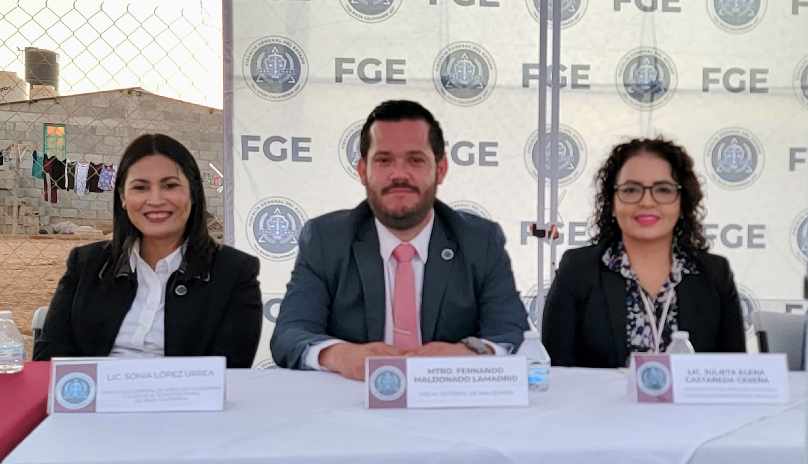 En su mensaje de bienvenida, el Fiscal Regional de San Quintín, Fernando Maldonado Lamadrid, agradeció la presencia de todos los asistentes y destacó que para la Fiscal General es fundamental mantener un acercamiento constante con la comunidad, atendiendo así sus necesidades en materia de procuración de justicia. Resaltó la importancia del programa “Fiscal Enlace Contigo” y el papel de las unidades móviles del Centro de Atención Tecnológica.