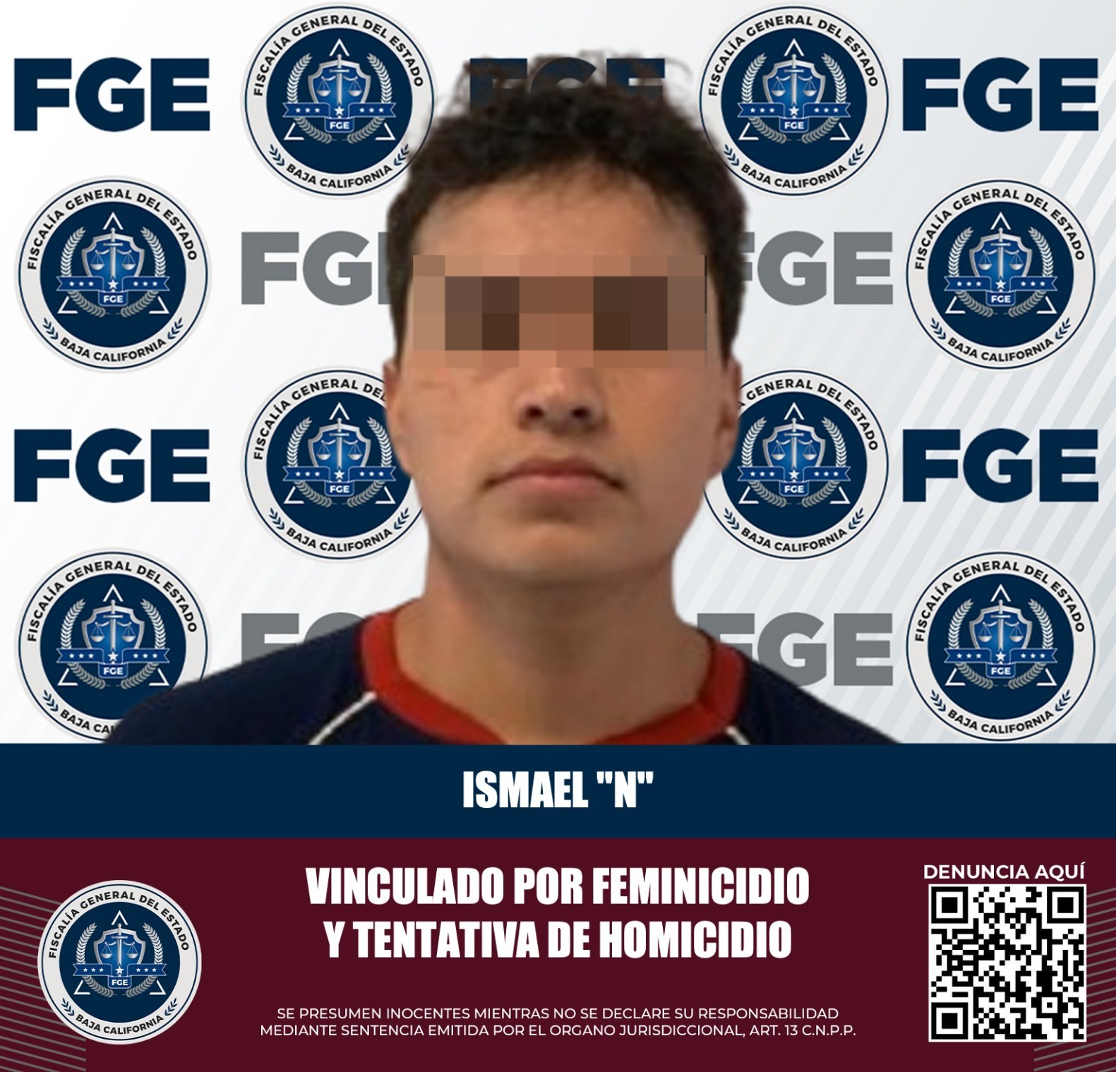 TECATE, BAJA CALIFORNIA. - Tras una exhaustiva búsqueda y presentación de datos de prueba contundentes, la Fiscalía General del Estado, a través de la Fiscalía Especializada en Delitos Contra la Vida, logró la vinculación a proceso de Ismael “N”, a quien se le señala del delito de feminicidio y homicidio en grado de tentativa.
