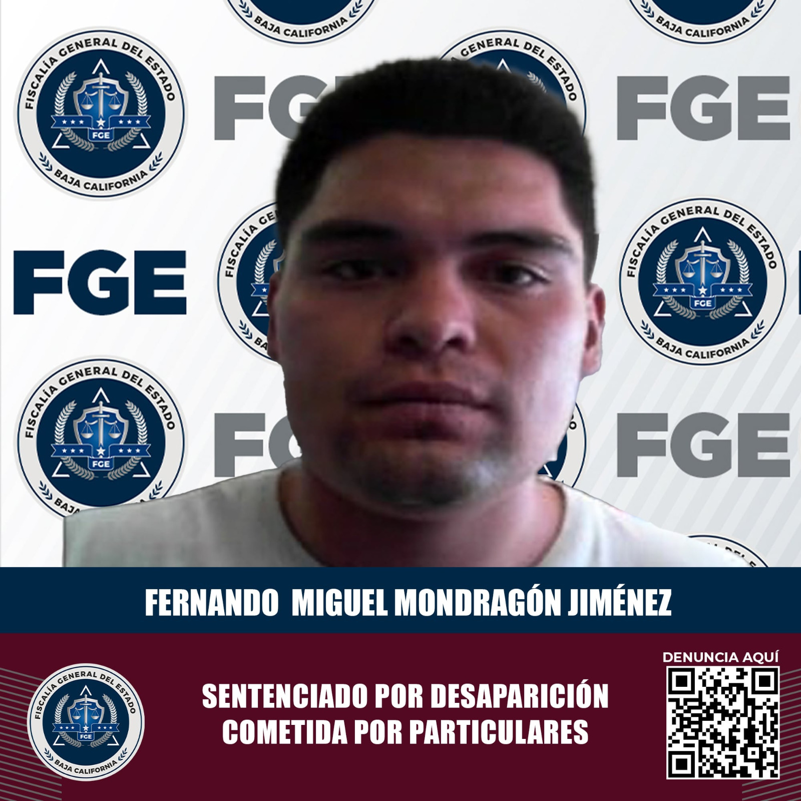 MEXICALI, BAJA CALIFORNIA. - La Fiscalía General del Estado (FGE), a través de una correcta investigación, logró acreditar la participación de un joven de 21 años en el delito desaparición cometida por particulares, obteniendo con ello un fallo condenatorio