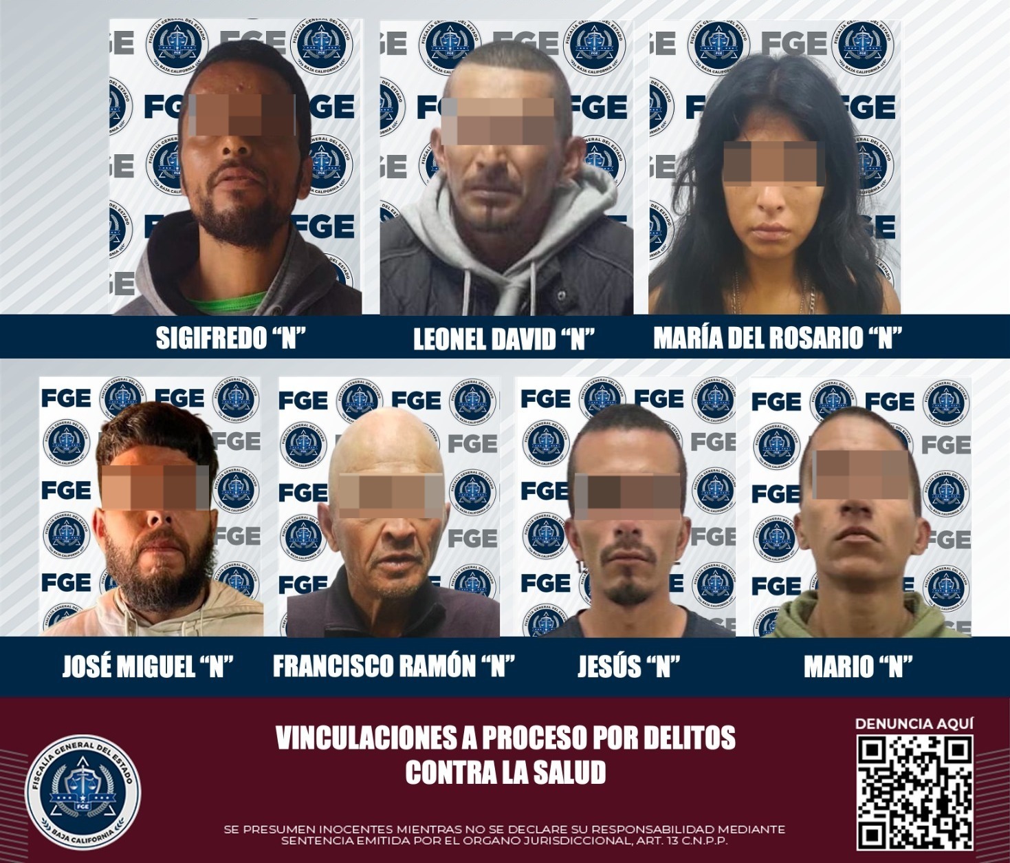 TIJUANA, BAJA CALIFORNIA. - En audiencias de vinculación a proceso llevadas a cabo de manera independiente, la Fiscalía General del Estado informa que siete acusados por delitos contra la salud en la modalidad de narcomenudeo han quedado sujetos a proceso penal.