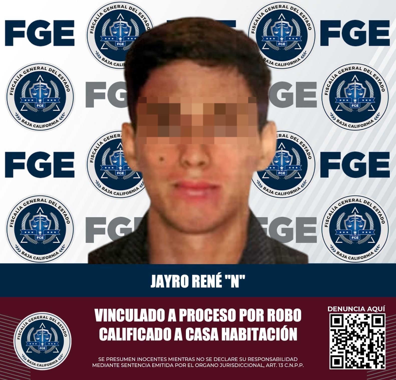 TIJUANA, BAJA CALIFORNIA. - La Fiscalía General del Estado informa que se ha iniciado el proceso penal en contra de un sujeto acusado del delito de robo calificado a casa habitación. Con las pruebas presentadas por el Ministerio Público, el Juez de Control determinó vincularlo a proceso.