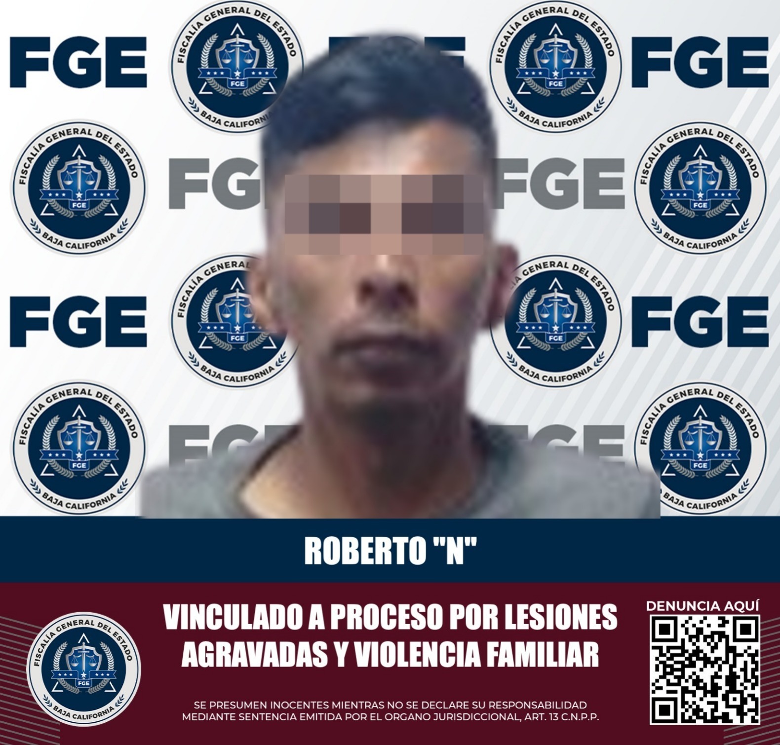 TIJUANA, BAJA CALIFORNIA. - La Fiscalía General del Estado informa que fue vinculado a proceso penal un sujeto acusado de lesiones agravadas y violencia familiar.