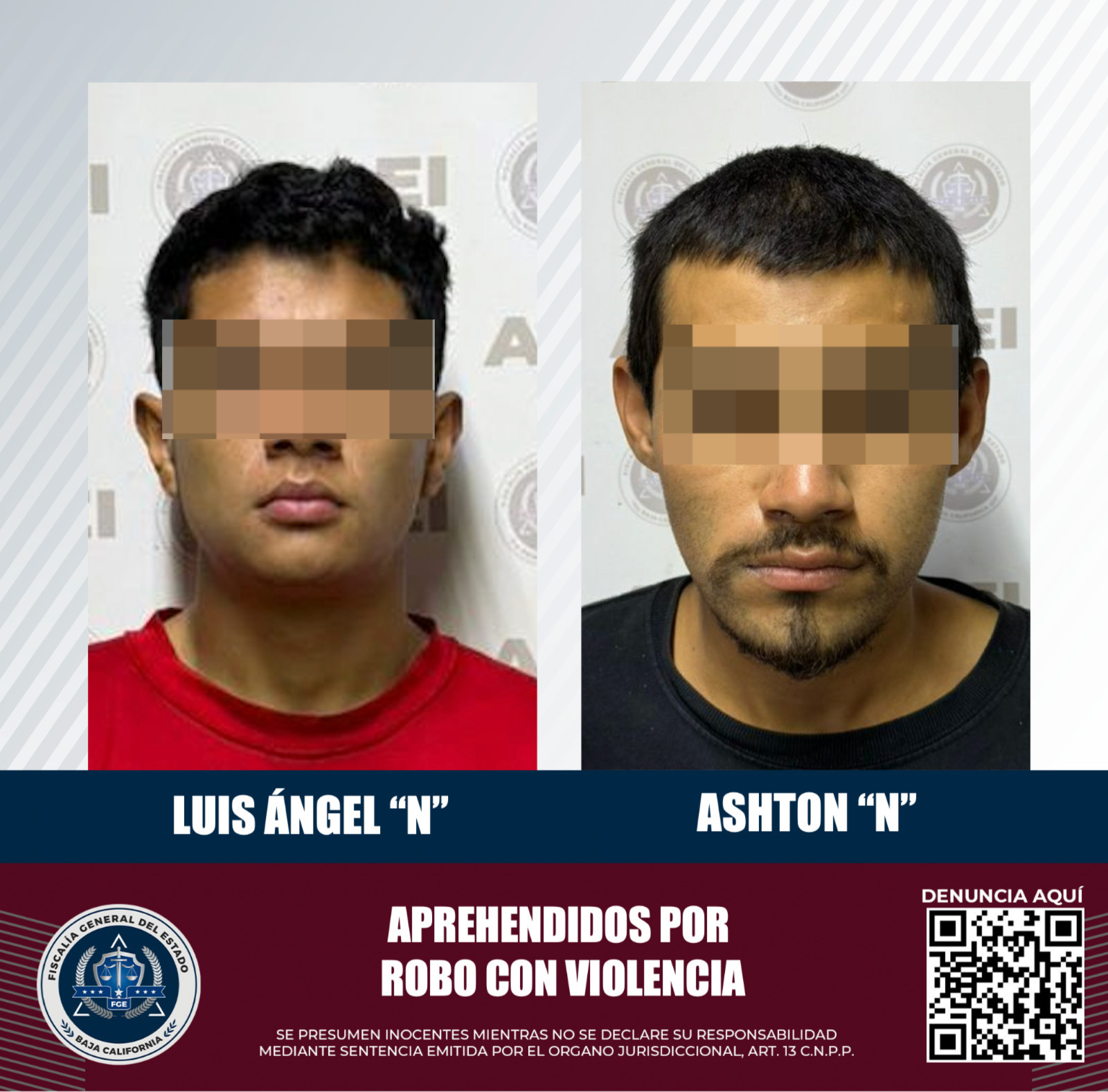 ENSENADA, BAJA CALIFORNIA. - Agentes de la Fiscalía General del Estado ejecutaron órdenes de aprehensión contra dos individuos señalados como objetivos prioritarios, vinculados con violentos robos en establecimientos comerciales de Ensenada, como resultado de las labores realizadas por la Unidad de Investigación de Robos de la Fiscalía Regional de Ensenada.