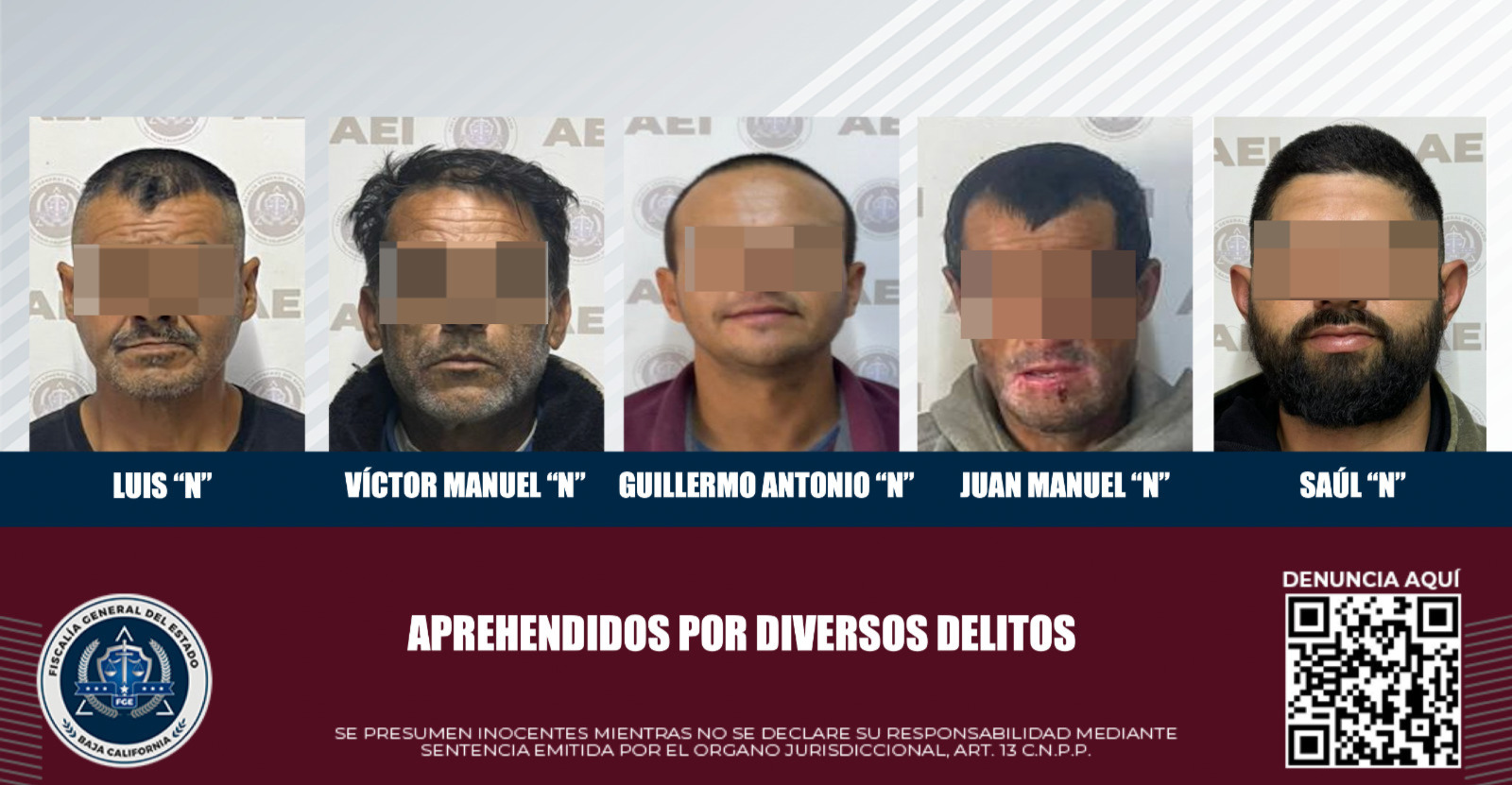 ENSENADA, BAJA CALIFORNIA. - Agentes de la Fiscalía General del Estado llevaron a cabo la detención de varios individuos con órdenes de aprehensión vigentes, todos ellos requeridos por su presunta participación en distintos ilícitos.