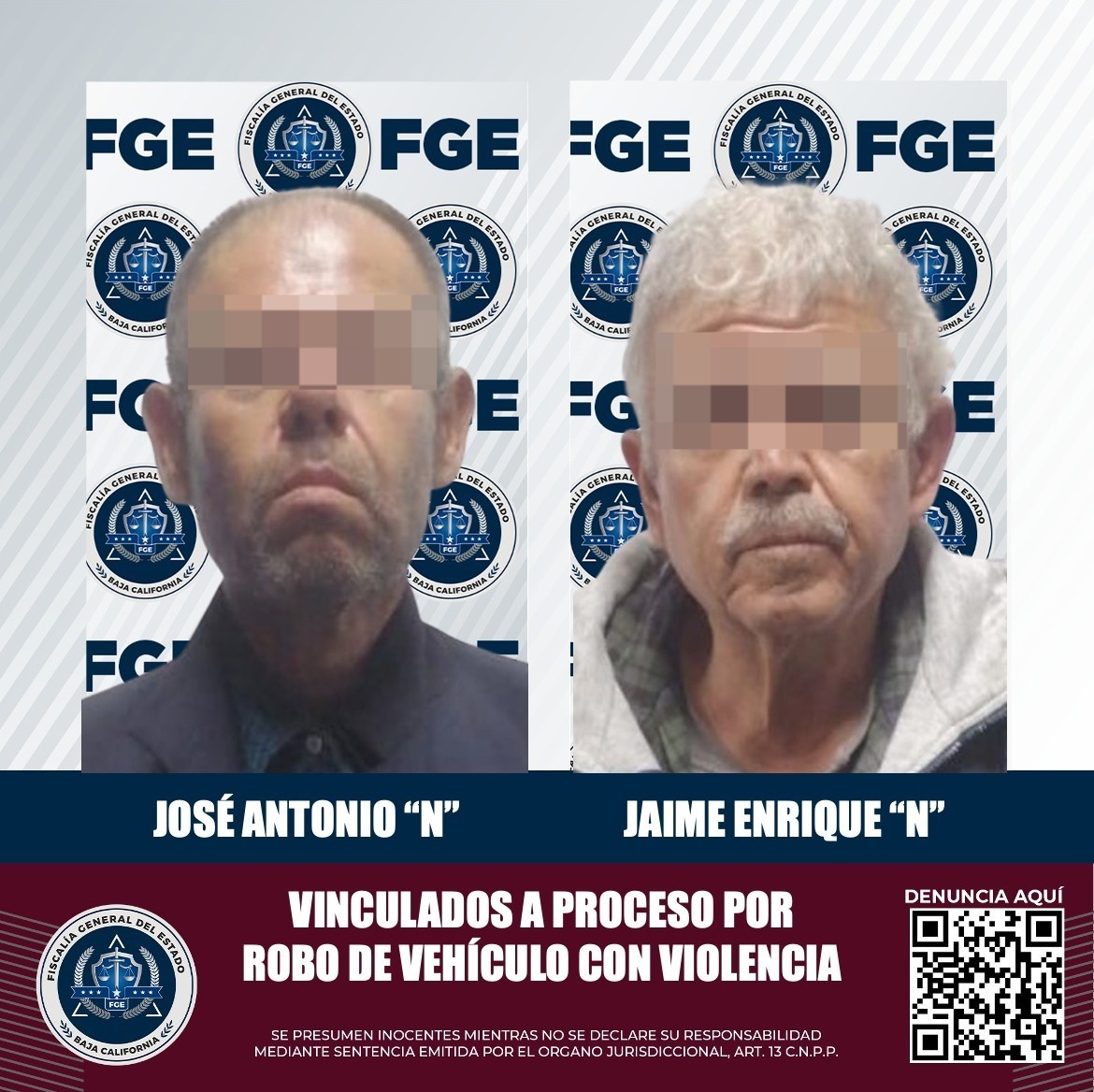 TIJUANA, BAJA CALIFORNIA. - La Fiscalía General del Estado informa que, derivado del trabajo del Ministerio Público en audiencia de vinculación, quedaron sujetos a proceso dos presuntos implicados en el delito de robo de vehículo con violencia.