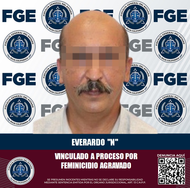 TIJUANA, BAJA CALIFORNIA. - La Fiscalía General del Estado de Baja California, que encabeza la Dra. Ma. Elena Andrade Ramírez; dio a conocer que Everardo “N” ha sido vinculado a proceso por el delito de feminicidio agravado en contra de su compañera de trabajo, María del Carmen, tras los hechos ocurridos el pasado 27 de octubre de 2024 en la colonia Juárez, en esta ciudad.