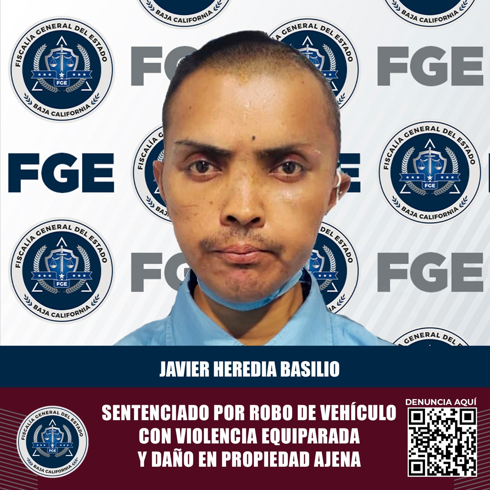 MEXICALI, BAJA CALIFORNIA. - Con base en las evidencias integradas en la carpeta de investigación y en la presentación de argumentos, la Fiscalía General del Estado (FGE), logró una pena condenatoria en contra de Javier Heredia Basilio alias "El Giner".