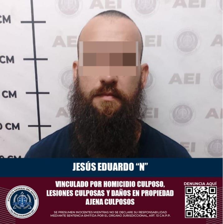 ENSENADA, BAJA CALIFORNIA. - La Fiscalía General del Estado informa que Jesús Eduardo “N” ha sido vinculado a proceso por homicidio culposo, lesiones culposas y daños culposos, tras el incidente de tránsito ocurrido el 14 de noviembre de 2024, durante la revisión mecánica de la carrera Baja 1000, en la ciudad de Ensenada.