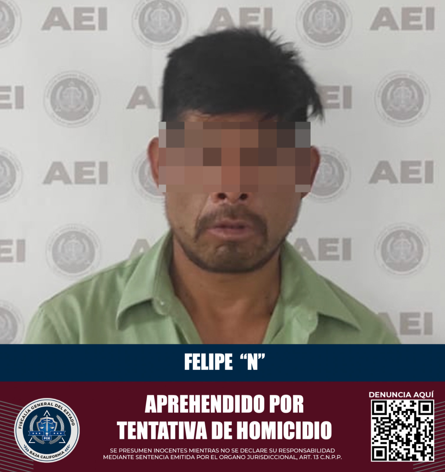 SAN QUINTÍN, BAJA CALIFORNIA. - La Fiscalía General del Estado cumplimentó una orden de aprehensión contra un individuo identificado como Felipe “N”, de 43 años de edad, alias “La Liebre”, por el delito de homicidio calificado en grado de tentativa.
