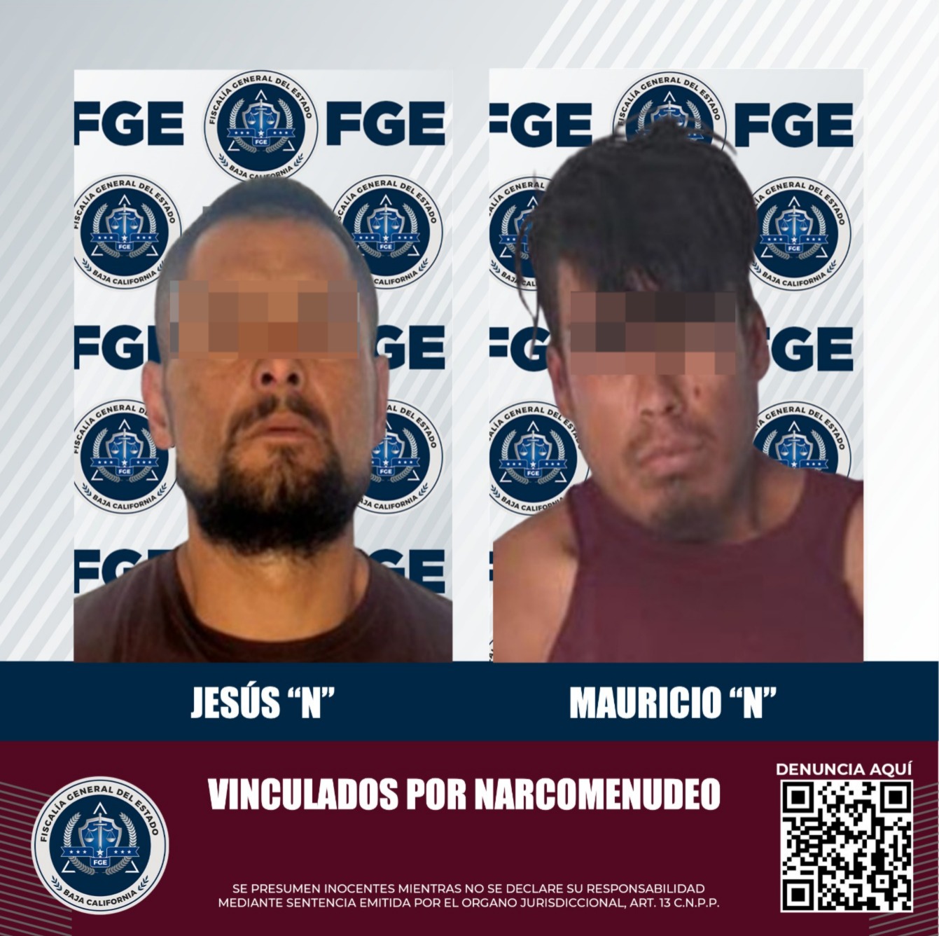 ENSENADA, BAJA CALIFORNIA. - La Fiscalía General del Estado logró la vinculación a proceso de dos hombres por delitos contra la salud en modalidad de narcomenudeo, por posesión de metanfetamina.