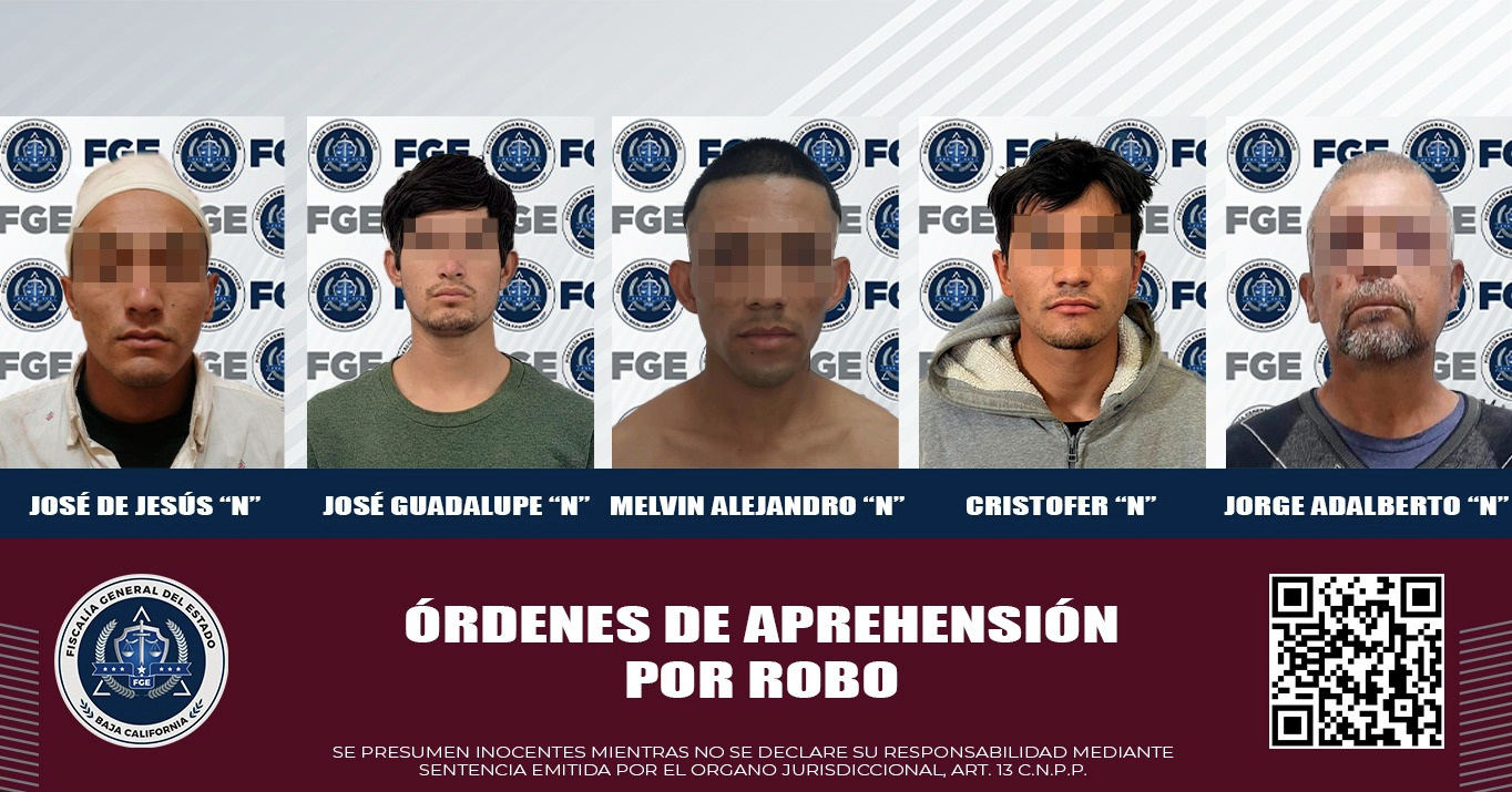 MEXICALI, BAJA CALIFORNIA. - Elementos de la Fiscalía Regional de Mexicali, a través de diversas acciones efectuadas, lograron la aprehensión de cinco prófugos de la justicia por estar relacionados en los delitos de robo en sus diferentes modalidades.