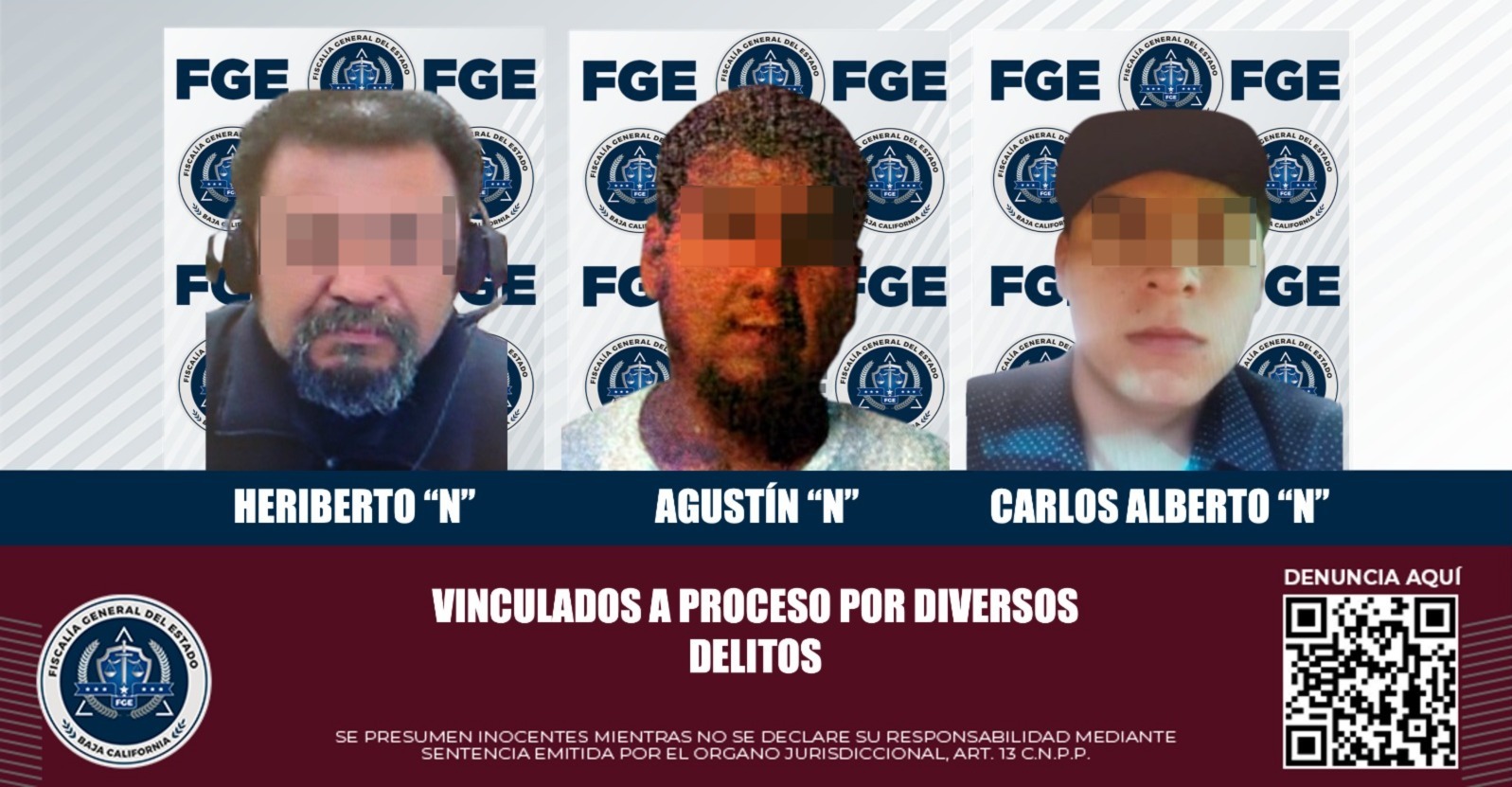 De acuerdo con la información proporcionada por la Fiscalía Regional de Tecate, los imputados Heriberto “N”, Agustín “N” y Carlos Alberto “N” fueron vinculados a proceso, ya que se les acusa de los delitos señalados.