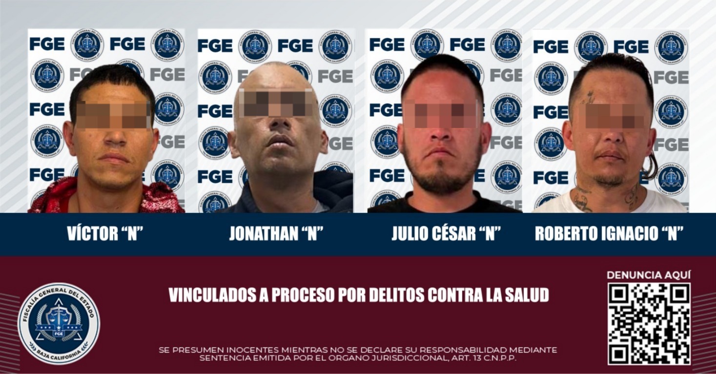 TIJUANA, BAJA CALIFORNIA. - En audiencias de vinculación a proceso llevadas a cabo de manera independiente, la Fiscalía General del Estado informa que cuatro personas acusadas del delito contra la salud en la modalidad de narcomenudeo han quedado sujetas a proceso penal.