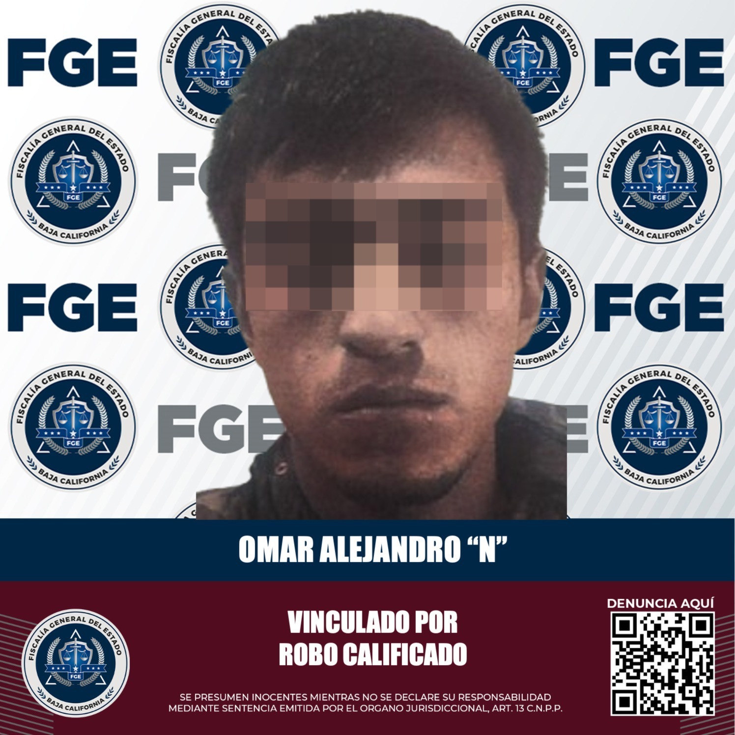 TIJUANA, BAJA CALIFORNIA. - La Fiscalía Regional de Tijuana logró la vinculación a proceso de Omar Alejandro "N", tras su detención por robo calificado a comercio abierto al público, ejecutado con violencia.