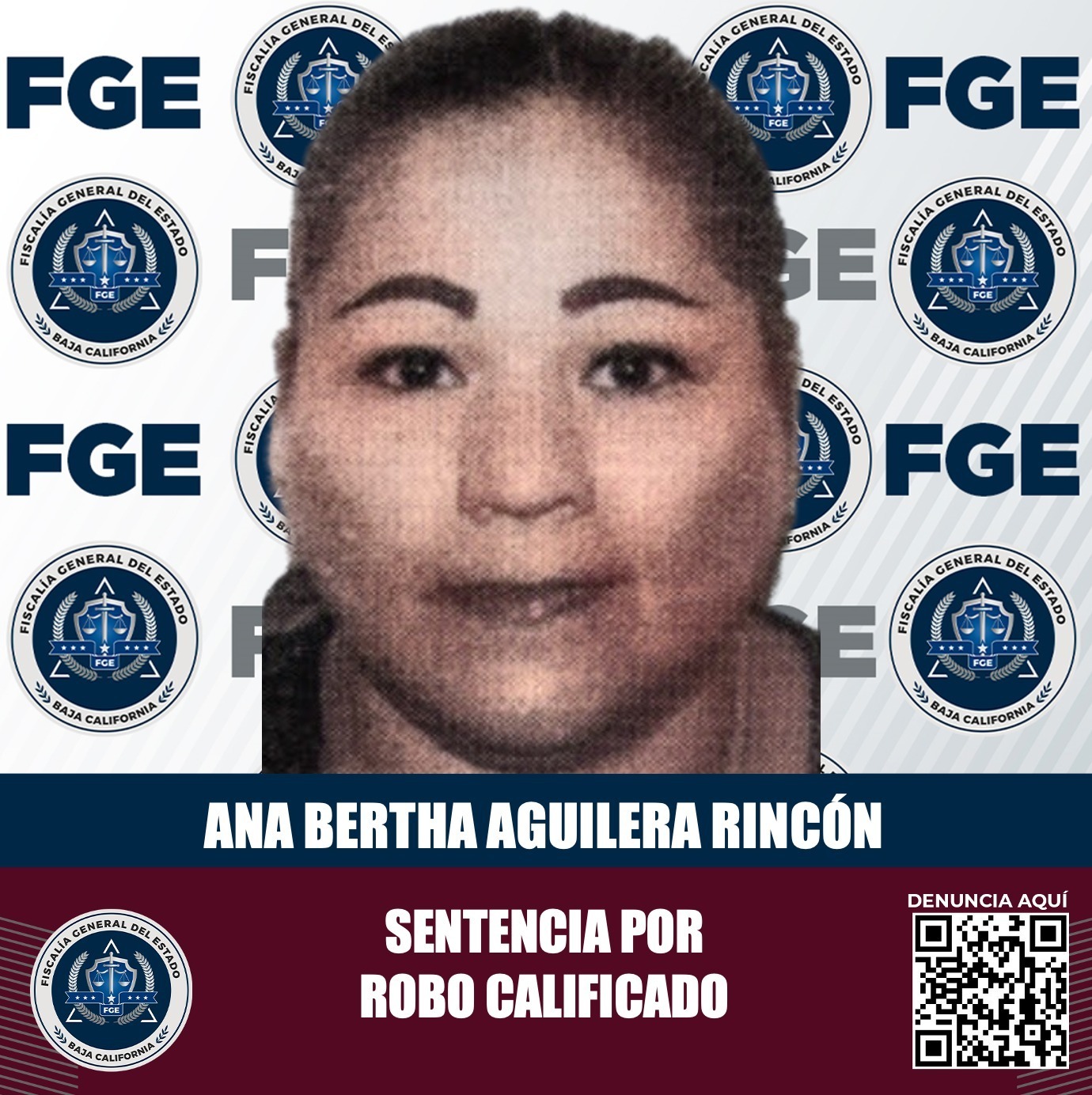TECATE, BAJA CALIFORNIA. - Gracias a la labor de investigación y recopilación de datos de prueba, se logró obtener la sentencia condenatoria en contra de Ana Bertha Aguilera Rincón, por cometer el delito de robo calificado a establecimiento comercial abierto al público.
