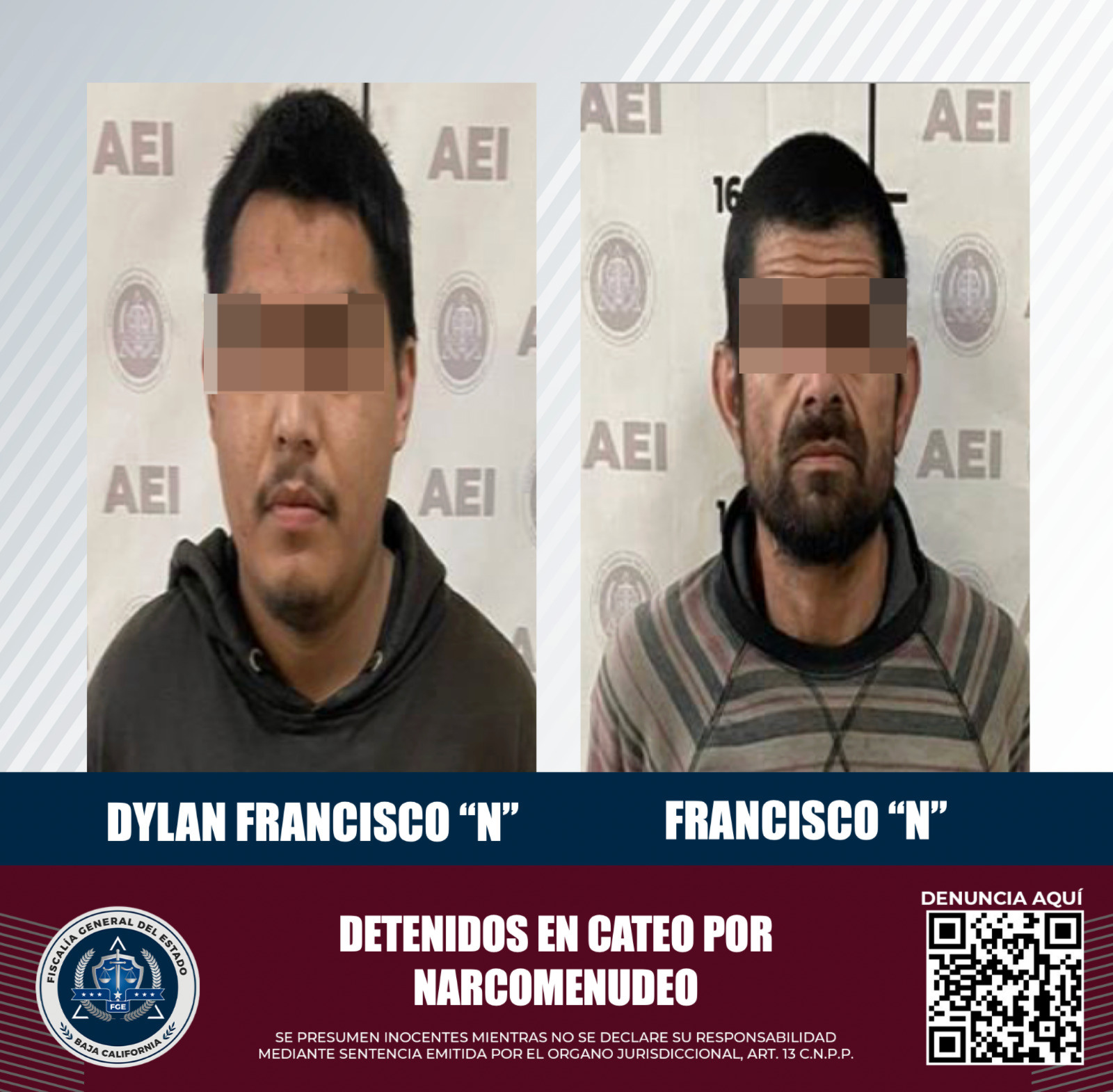 ENSENADA, BAJA CALIFORNIA. - La Fiscalía General del Estado, en el marco de operativos de combate al narcomenudeo, ejecutó una orden de cateo que resultó en la detención de dos sujetos y el aseguramiento de drogas.