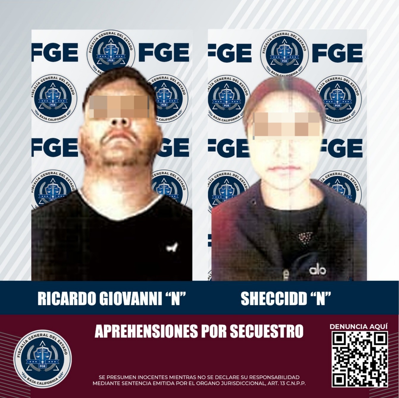 TIJUANA, BAJA CALIFORNIA. - La Fiscalía General del Estado, a través de la Unidad de Investigación Especializada en Combate al Secuestro, logró la detención de Sheccid “N” y Ricardo Giovanni “N”, quienes contaban con una orden de aprehensión activa por el delito de secuestro agravado en el Estado de México.