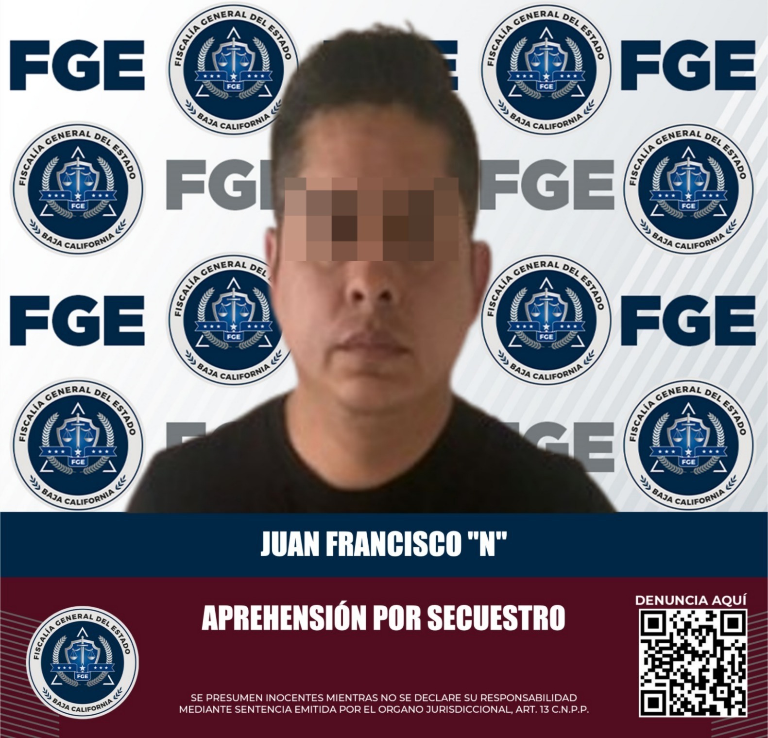 TIJUANA, BAJA CALIFORNIA. - En un operativo realizado por la Unidad de Investigación Especializada en Combate al Secuestro, la Fiscalía General del Estado (FGE) logró la captura de Juan Francisco “N”, sujeto con orden de aprehensión activa por el delito de secuestro agravado en el Estado de Guerrero.