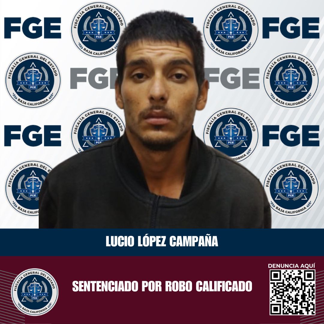 ENSENADA, BAJA CALIFORNIA. - La Fiscalía Regional de Ensenada logró una condena de 11 años de prisión contra Lucio López Campaña, quien fue encontrado culpable por su participación en el robo violento de 363 mil pesos en una empresa agrícola, gracias a la labor realizada por la Unidad de Investigación Foránea.