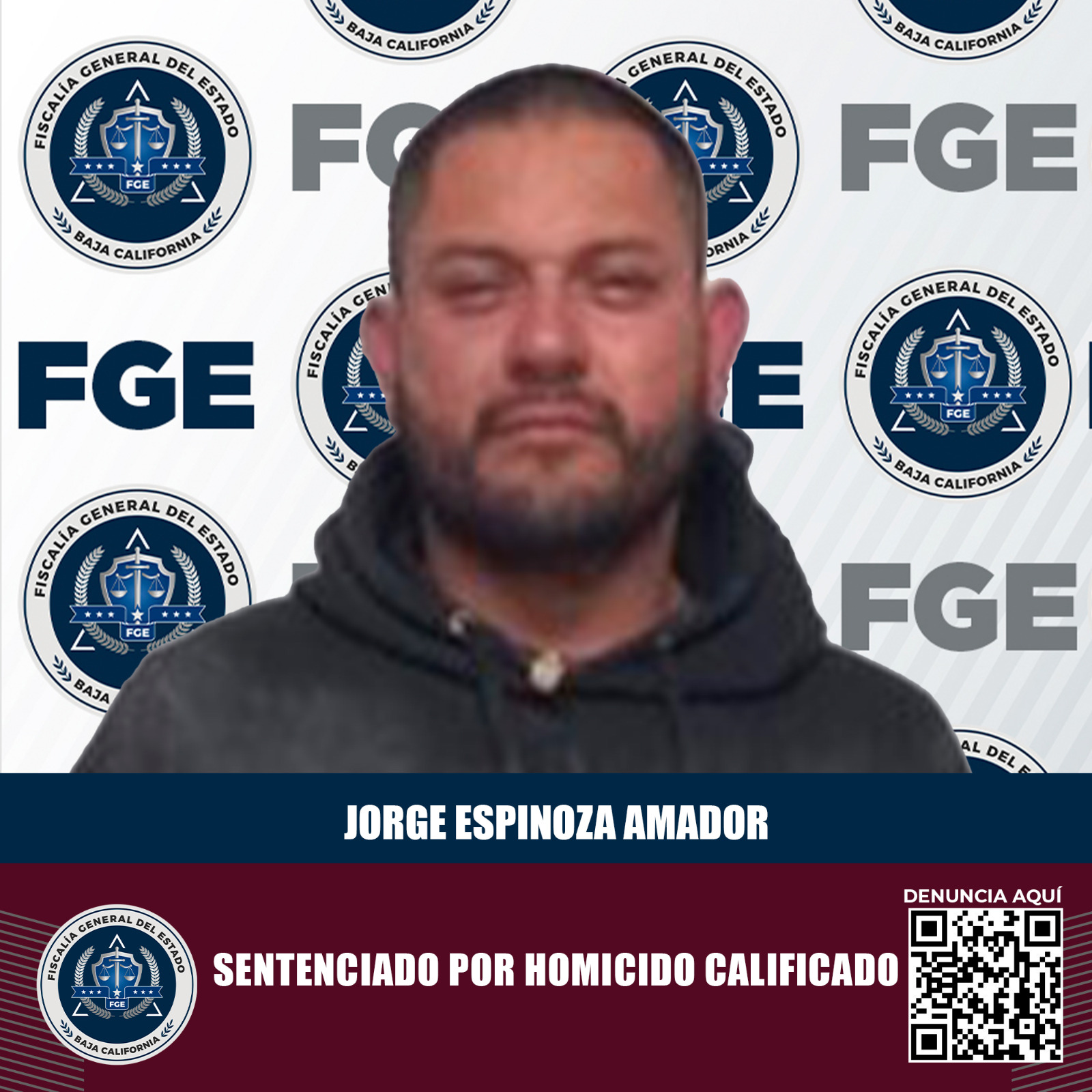 MEXICALI, BAJA CALIFORNIA. - La Fiscalía General del Estado, logró una sentencia de 23 años de prisión en contra de Jorge Espinoza Amador a quien un Juez Penal encontró culpable del delito de homicidio calificado.