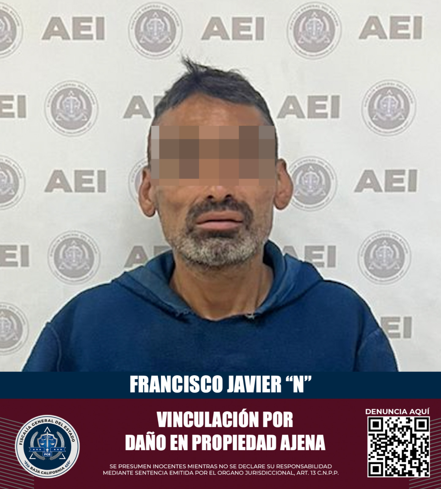 SAN QUINTÍN, BAJA CALIFORNIA. - La Fiscalía Regional de San Quintín presentó cargos por el delito de daño en propiedad ajena contra un hombre identificado como Francisco Javier “N”.