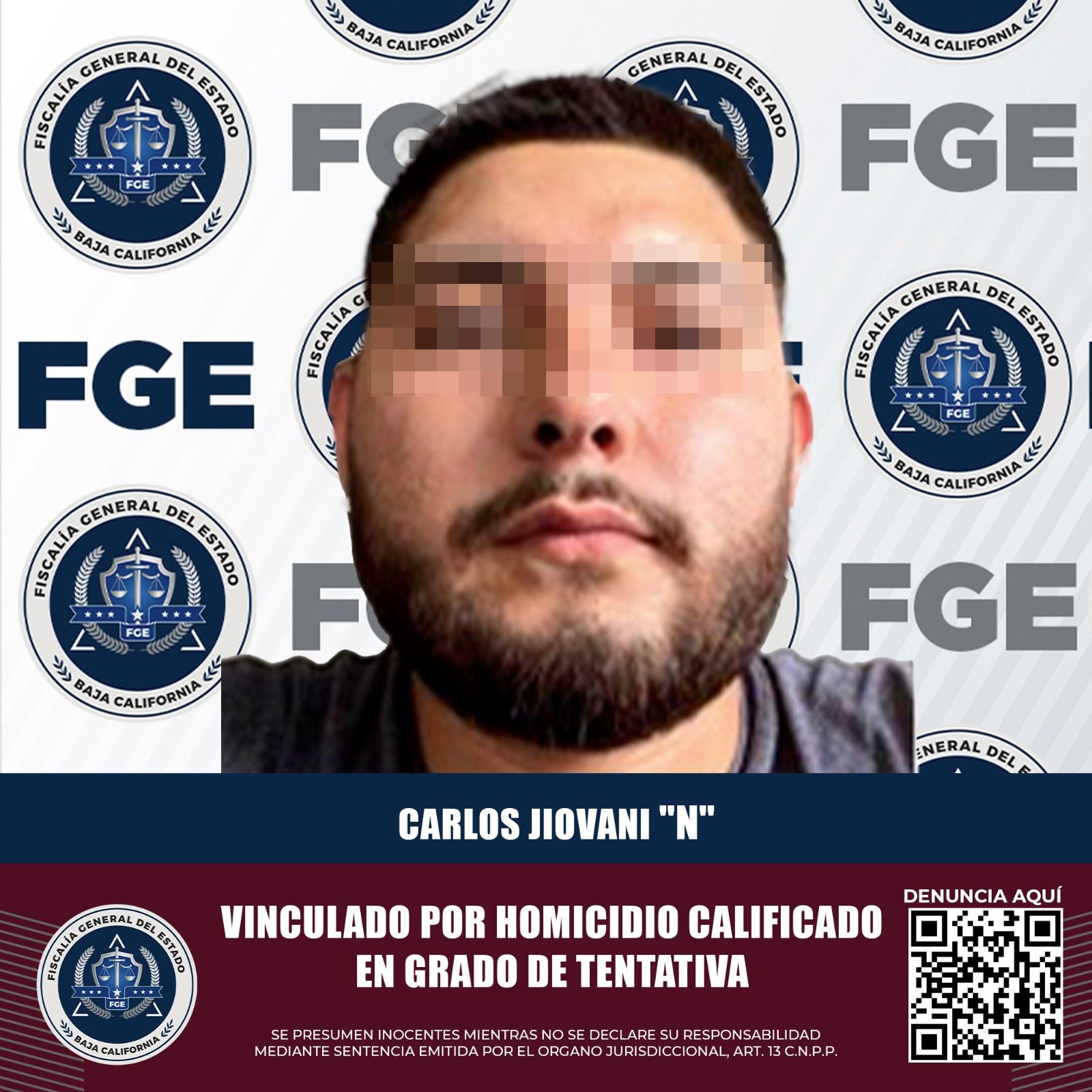 MEXICALI, BAJA CALIFORNIA. - Con base a los elementos de prueba presentados por la Fiscalía General del Estado, a través de la Fiscalía Especializada en delitos Contra la Vida, se obtuvo la vinculación a proceso de Carlos Jiovani “N”, relacionado en intento de homicidio.