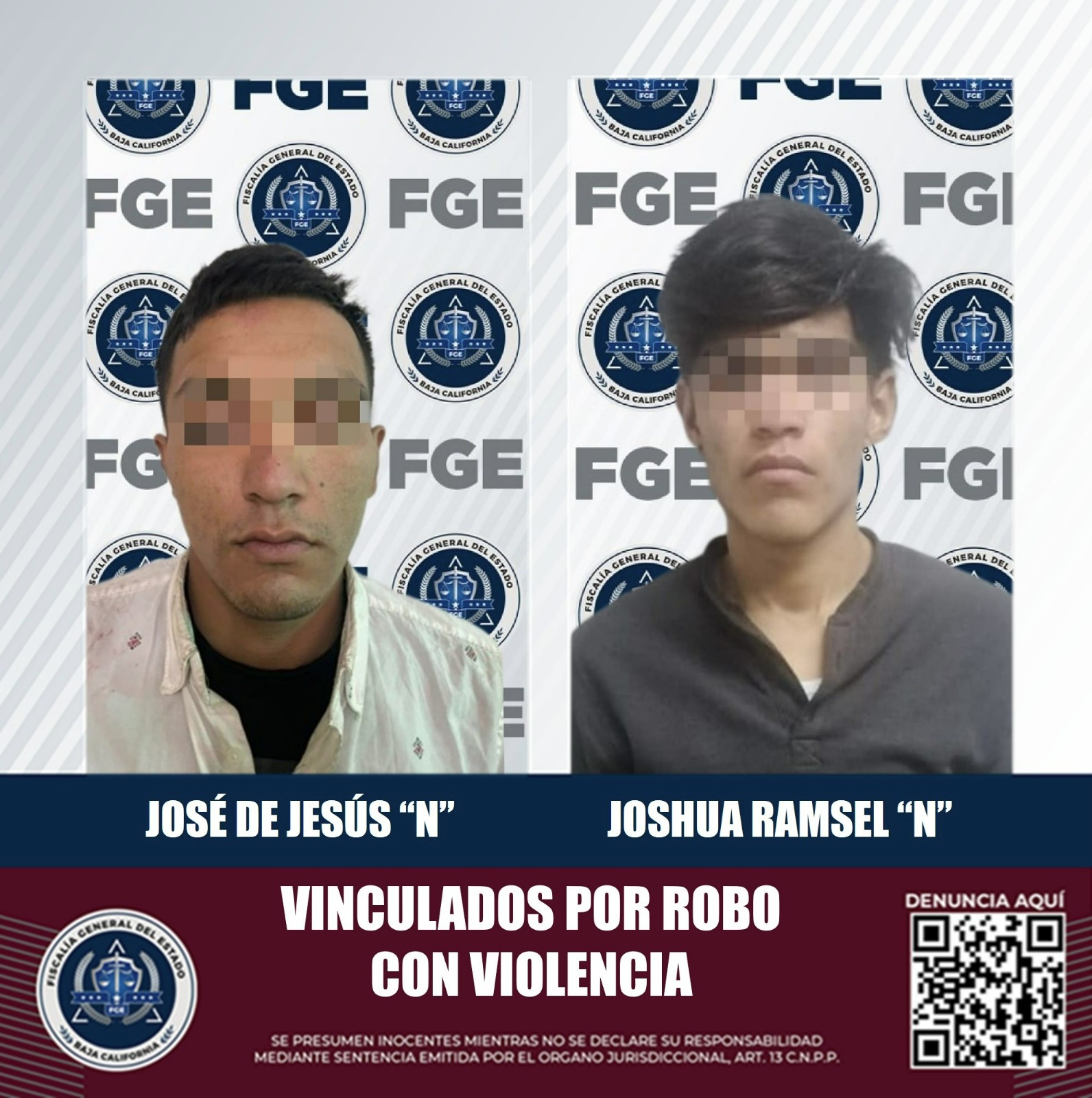 MEXICALI, BAJA CALIFORNIA. - Con base a los elementos probatorios presentados por Fiscalía Regional de Mexicali, a través de la Unidad de Investigación de Robos Poniente y Oriente, se inició proceso de penal de dos presuntos responsables de robos con violencia perpetrados a negocios de conveniencia.