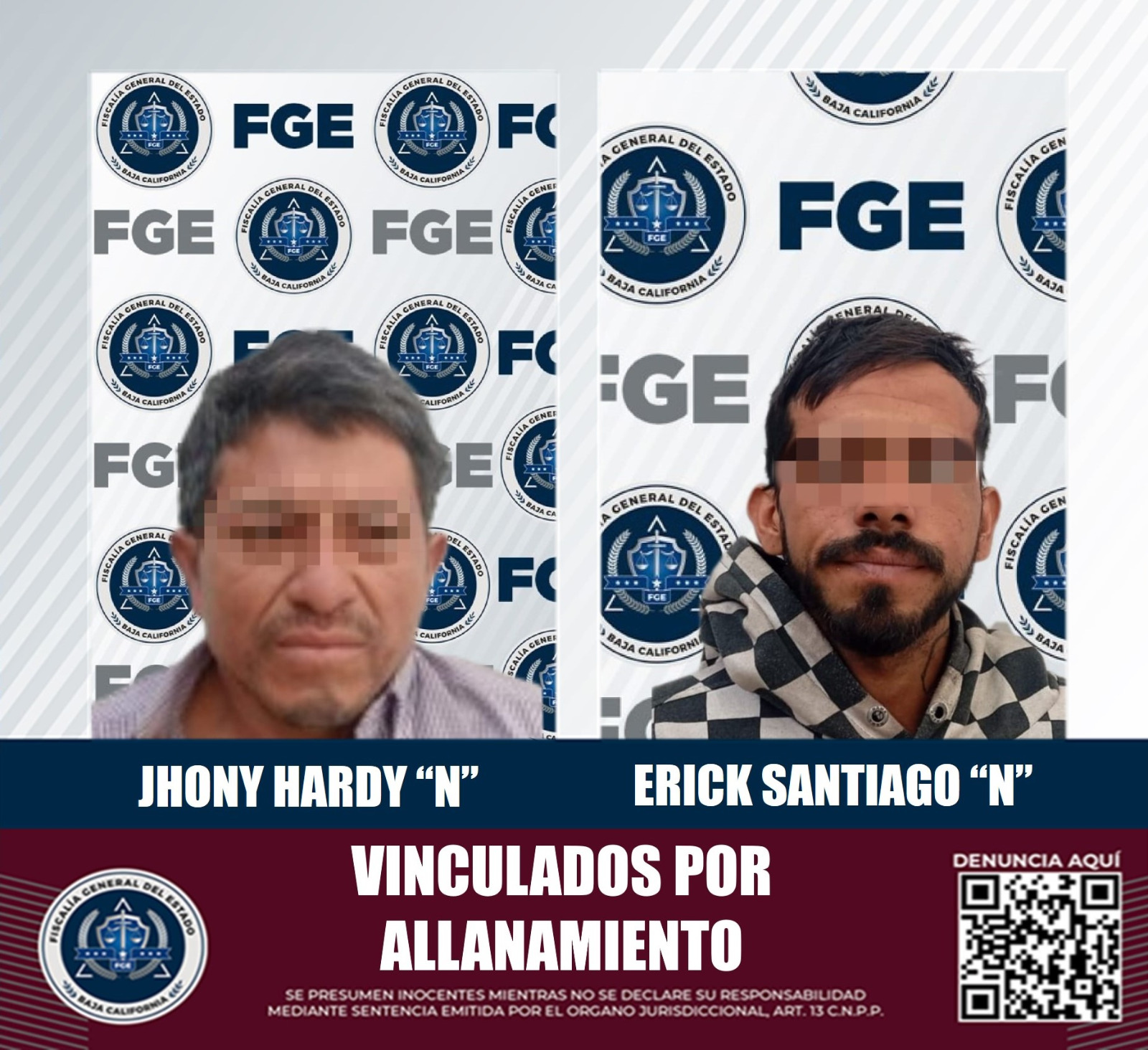 MEXICALI, BAJA CALIFORNIA. - La Fiscalía Regional de Mexicali a través de la Unidad de Investigación de Detenidos Poniente obtuvo la vinculación a proceso de dos sujetos, acusados por el delito de allanamiento, en audiencias por separado.