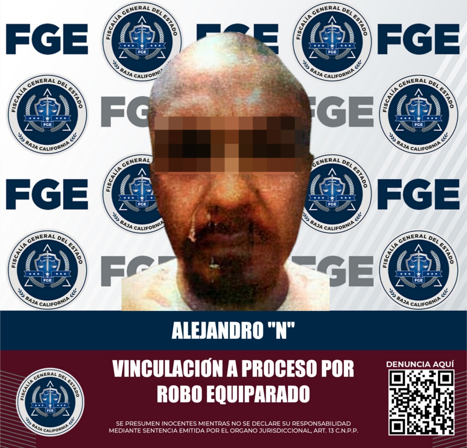 TIJUANA, BAJA CALIFORNIA. - La Fiscalía Regional Tijuana obtuvo la vinculación a proceso de Alejandro “N”, alias Daniel Alberto “N”, por su probable responsabilidad en el delito de robo equiparado de vehículo en la modalidad de usar vehículo de motor robado, derivado de dos hechos distintos registrados en esta ciudad.