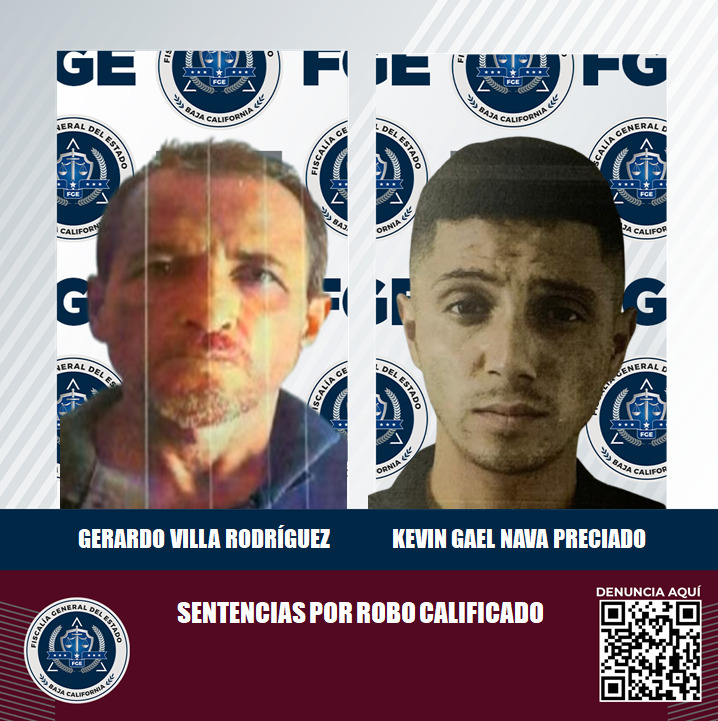 TIJUANA, BAJA CALIFORNIA. - Dos individuos responsables del delito de robo calificado fueron sentenciados en audiencias por separado, luego de que la Fiscalía Regional de Tijuana presentara los elementos de prueba ante la autoridad judicial.