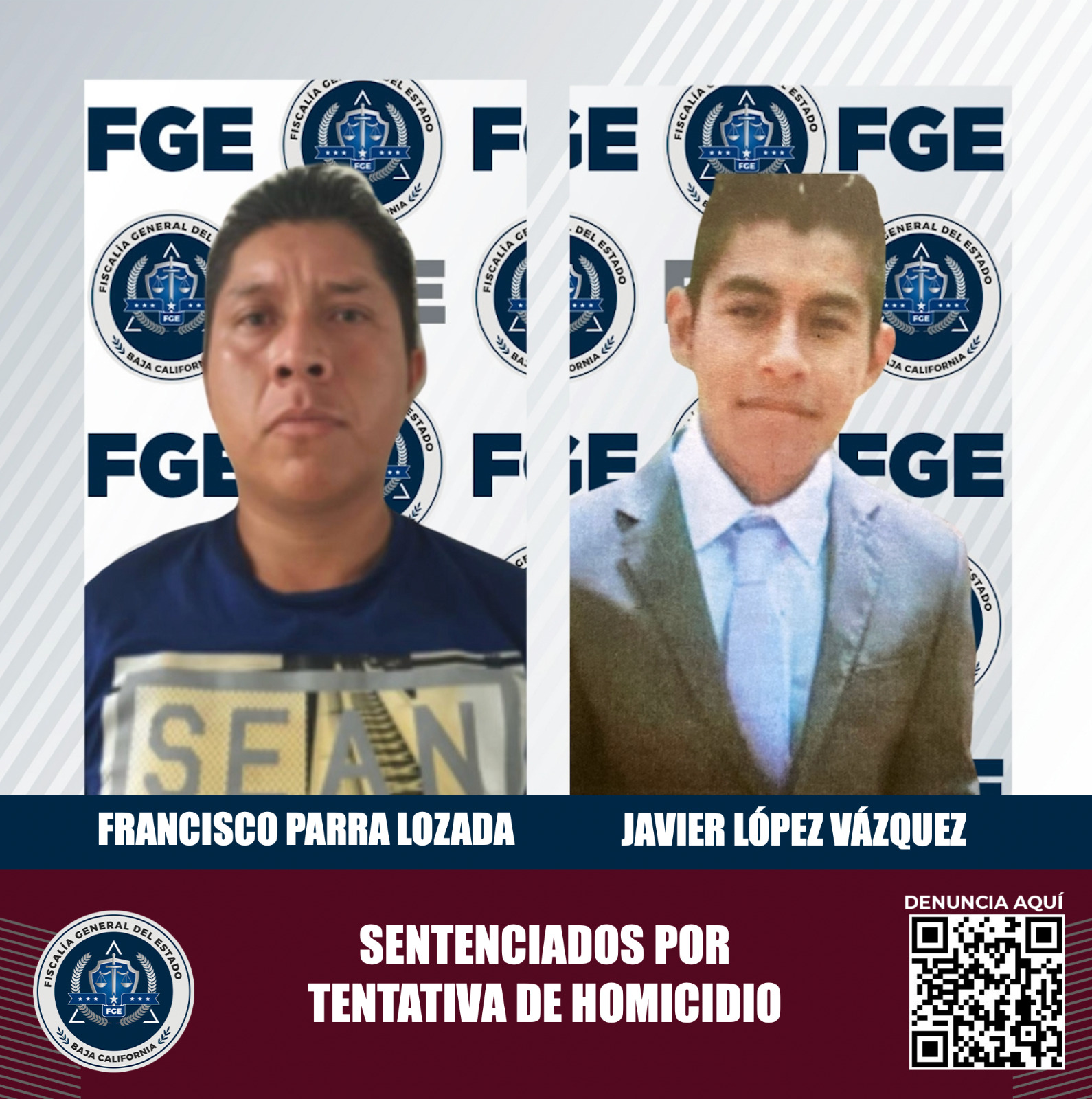 ENSENADA, BAJA CALIFORNIA. - La Fiscalía General del Estado logró una sentencia condenatoria de 20 años de prisión contra Javier López Vázquez y Francisco Parra Lozada, por tentativa de homicidio. Esta condena es el resultado de la investigación llevada a cabo por la Fiscalía Especializada en Delitos Contra la Vida y fue dictada en un juicio oral.