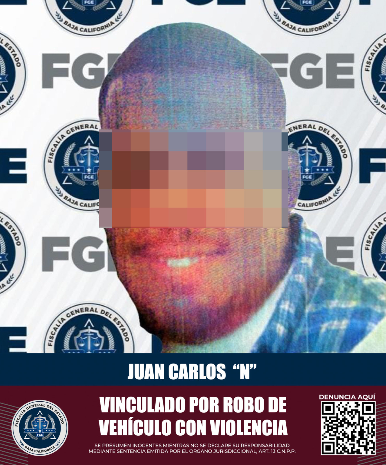 ENSENADA, BAJA CALIFORNIA. - La Fiscalía Regional de Ensenada, a través de la Unidad de Investigación de Robo de Vehículos, logró auto de vinculación a proceso contra Juan Carlos "N" por su presunta implicación en un incidente de robo con violencia de un vehículo en el fraccionamiento Buenaventura.