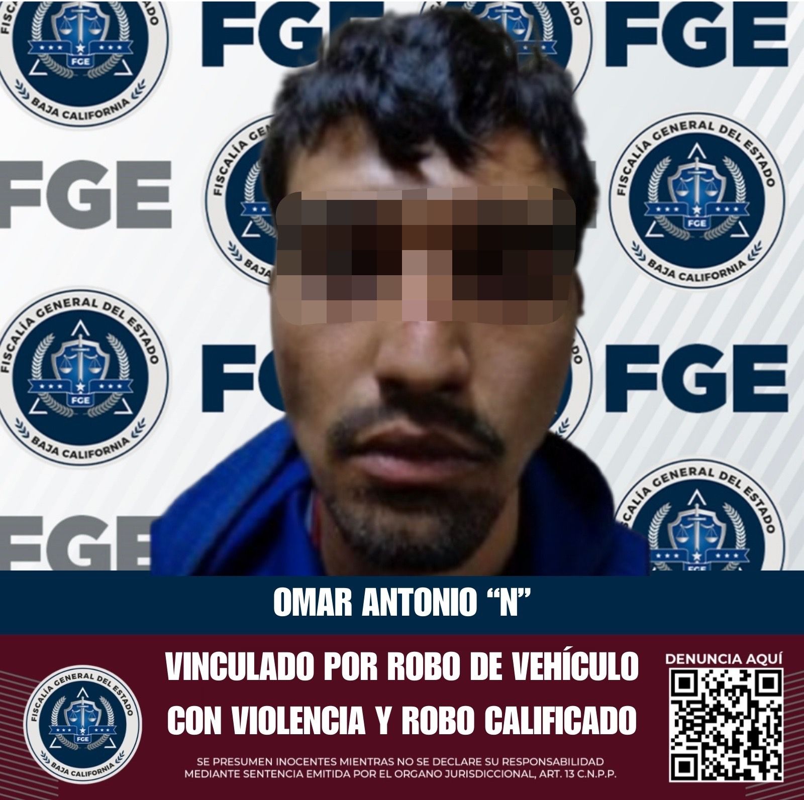 TECATE, BAJA CALIFORNIA. - A través de la Unidad de Investigación de Delitos contra Robos, la Fiscalía Regional de Tecate, obtuvo la vinculación a proceso de un masculino por el delito de robo de vehículo de motor con violencia, y robo calificado cometido por persona armada.