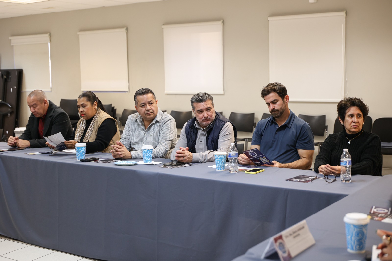 La reunión contó con la participación del Coordinador de Gabinete de la FGE, Juan Carlos Buenrostro Molina; el Fiscal Central, Rafael Orozco Vargas; el Fiscal Regional de Mexicali, Efrén Romo Ruiz; el Coordinador del Centro de Atención Tecnológica, Jesús Villalpando y el Coordinador del programa “Fiscal Enlace Contigo”, José Pedro Leyva, el Comandante de la Agencia Estatal de Investigación de Zona Mexicali Gustavo Francisco Olivo Loroña