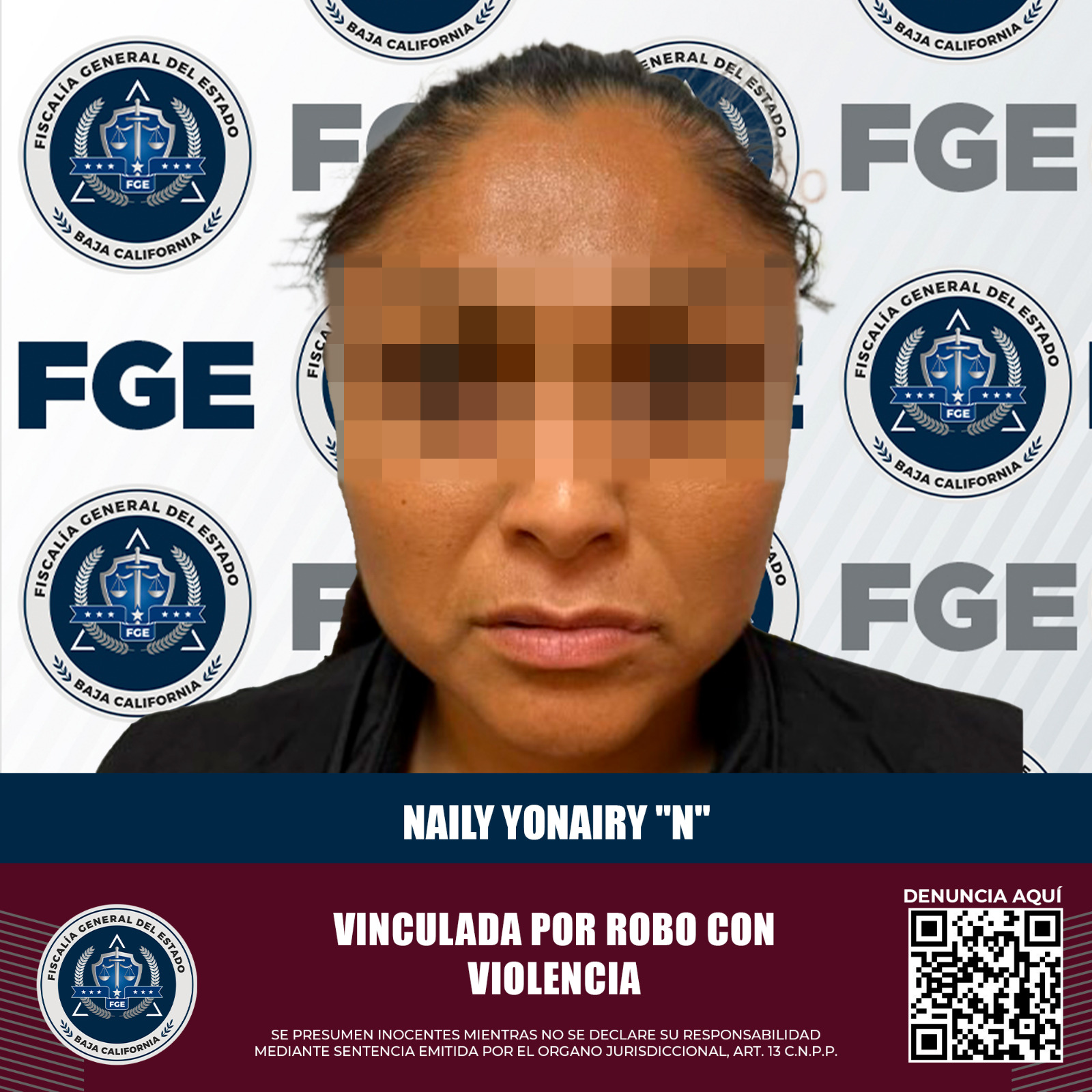 MEXICALI, BAJA CALIFORNIA. - La Fiscalía Regional de Mexicali a través de la Unidad de Investigación de Delitos de Robos Oriente, obtuvo con base a los elementos de prueba y argumentos presentados ante el Juez de Control, la vinculación a proceso en contra una mujer considerada como objetivo prioritario.