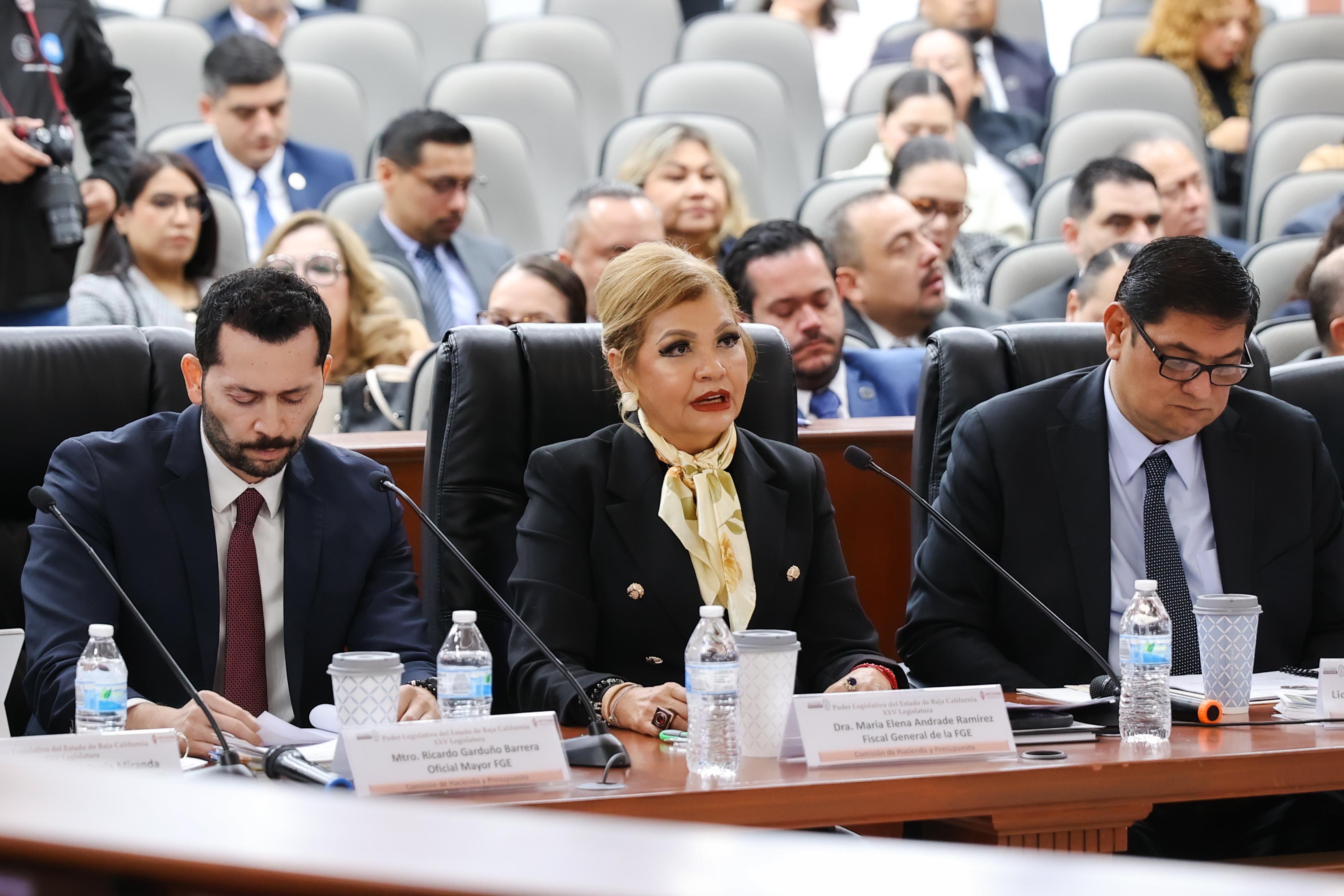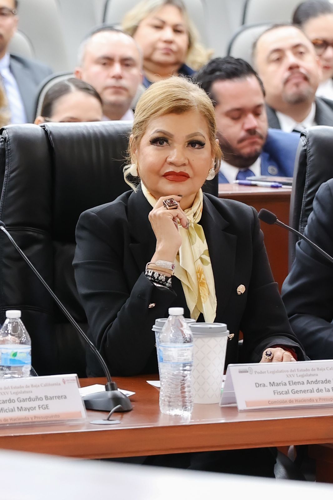 MEXICALI, BAJA CALIFORNIA. - La Fiscal General del Estado, Dra. Ma. Elena Andrade Ramírez, compareció ante la Comisión de Hacienda y Presupuesto del Congreso del Estado, presidida por la diputada Julia Andrea González Quiroz, para presentar el proyecto de presupuesto correspondiente al ejercicio fiscal 2025.