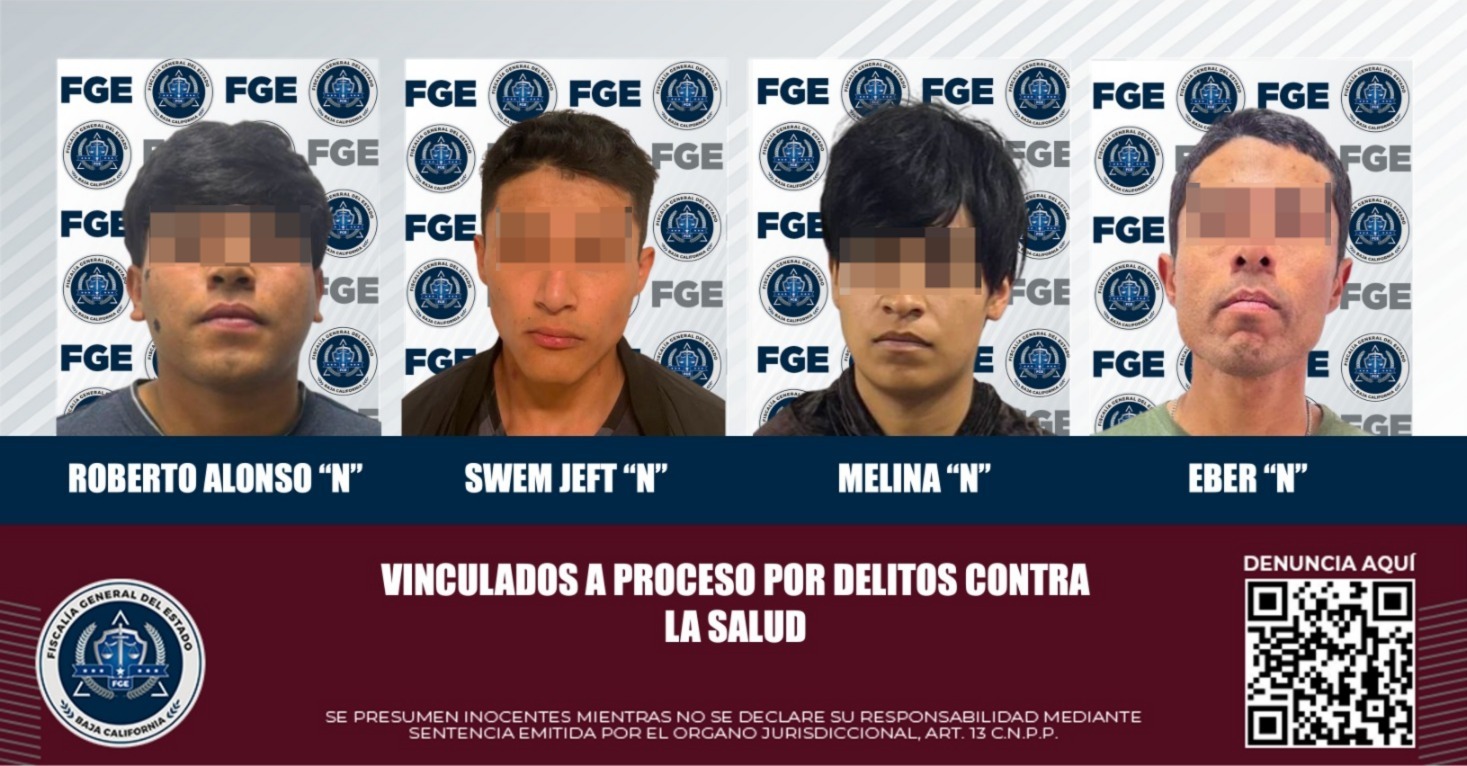 TIJUANA, BAJA CALIFORNIA. - Cuatro sujetos fueron vinculados a proceso por delitos contra la salud, tres de ellos permanecerán en prisión preventiva durante la realización de procedimiento penal, informó la Fiscalía General del Estado.