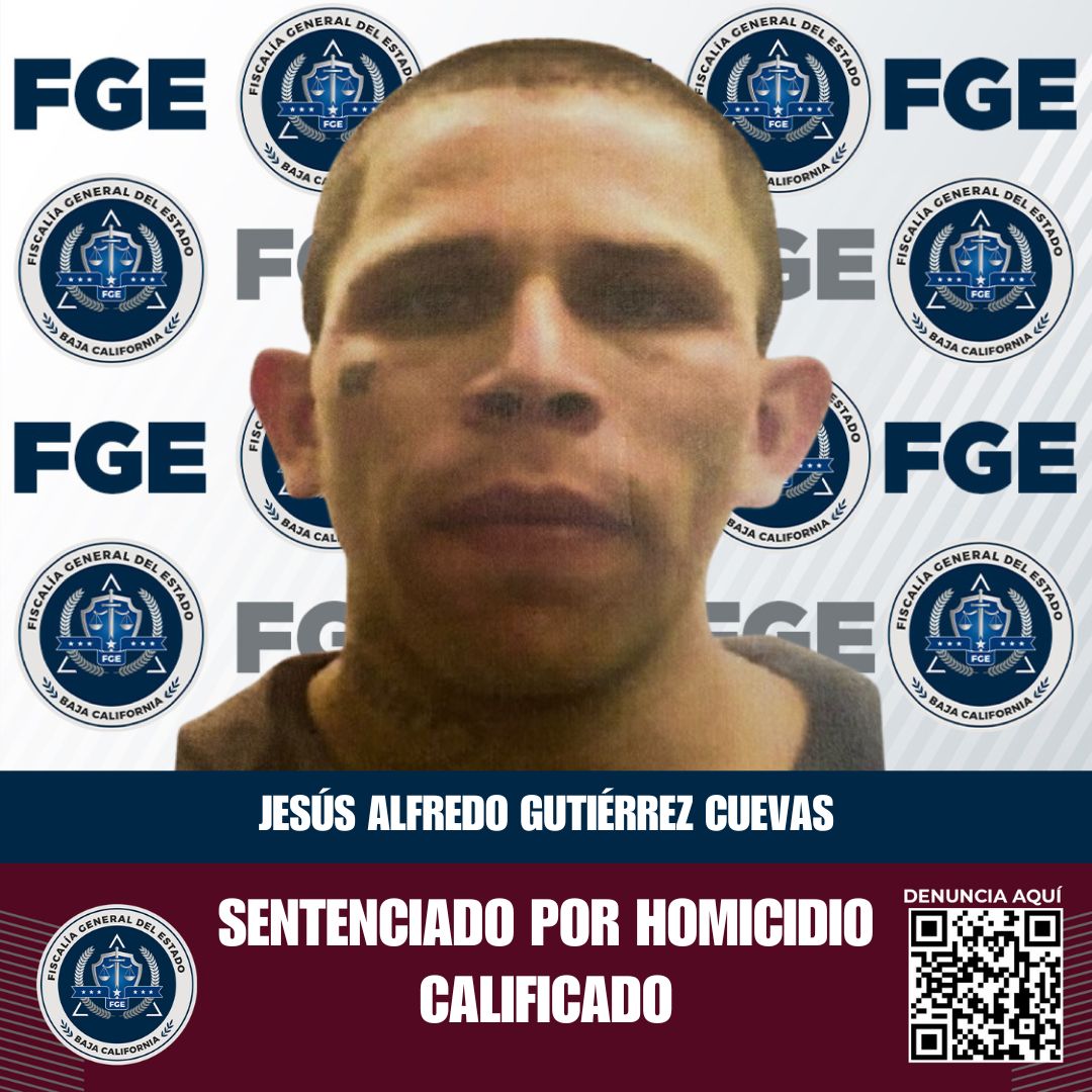 ENSENADA, BAJA CALIFORNIA. - La Fiscalía General del Estado, a través de la Fiscalía Especializada en Delitos Contra la Vida, obtuvo una sentencia condenatoria por el delito de homicidio en contra de Jesús Alfredo Gutiérrez Cuevas, alias "El Chango".