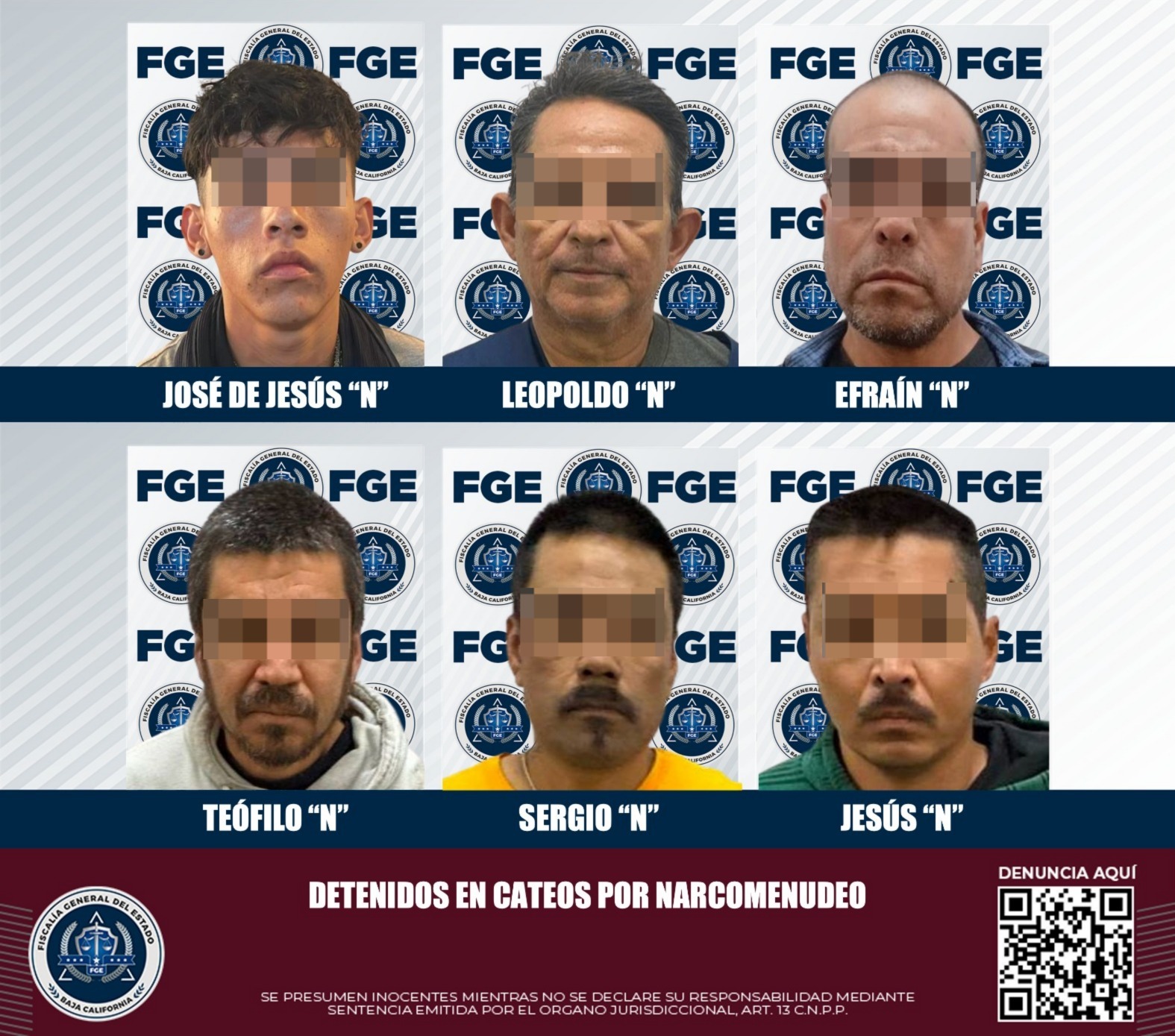 TIJUANA, BAJA CALIFORNIA. - Con la plena convicción de continuar enfrentando el delito de compra y venta de droga al menudeo, la Fiscalía General del Estado, a través de la Fiscalía Especializada en Narcomenudeo, detuvo a seis personas en cuatro cateos ordenados por jueces estatales.