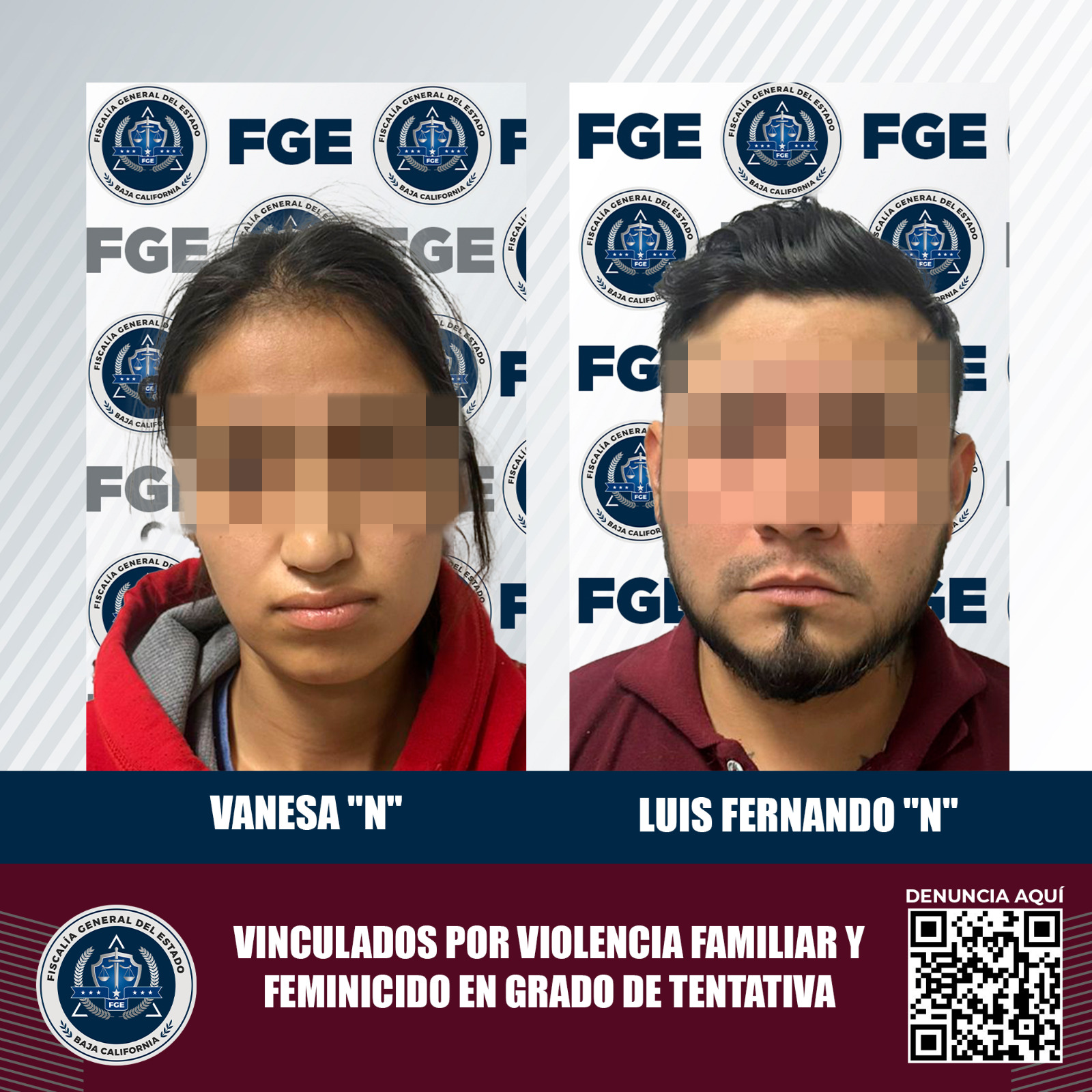 MEXICALI, BAJA CALIFORNIA. - La Fiscalía General del Estado (FGE) cumpliendo con el compromiso de proteger a las niñas, niños y personas vulnerables que se encuentra en riesgo de sufrir algún tipo de agresión física y psicológica, obtuvo la vinculación a proceso en contra de dos personas acusadas de los delitos de feminicidio en grado de tentativa y violencia familiar.