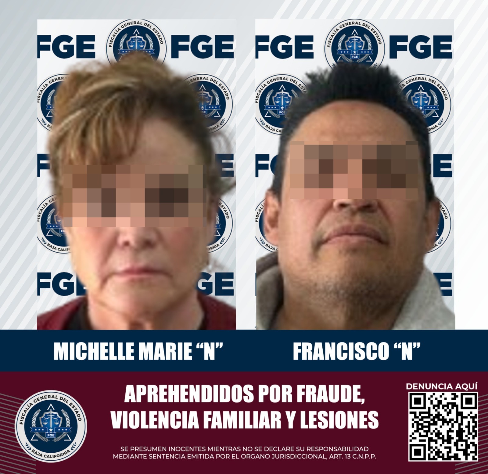PLAYAS DE ROSARITO, BAJA CALIFORNIA. - Gracias a la labor de investigación y persecución del delito, la Agencia Estatal de Investigación, adscrita a la Fiscalía Regional de Playas de Rosarito, logró la captura con orden de aprehensión, a dos individuos, señalados de cometer los delitos de fraude, violencia familiar y lesiones.