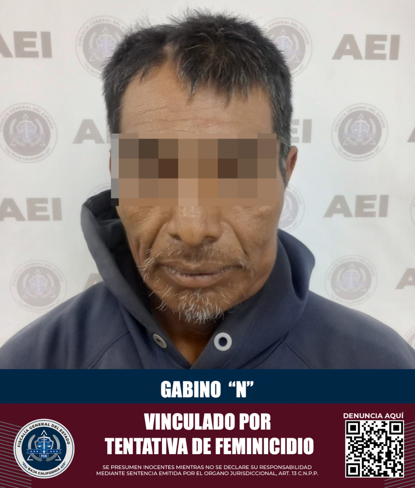 SAN QUINTÍN, BAJA CALIFORNIA. - La Fiscalía Regional de San Quintín presentó cargos por el delito de tentativa de feminicidio contra Gabino "N", quien fue detenido momentos después de atacar a su ex pareja.
