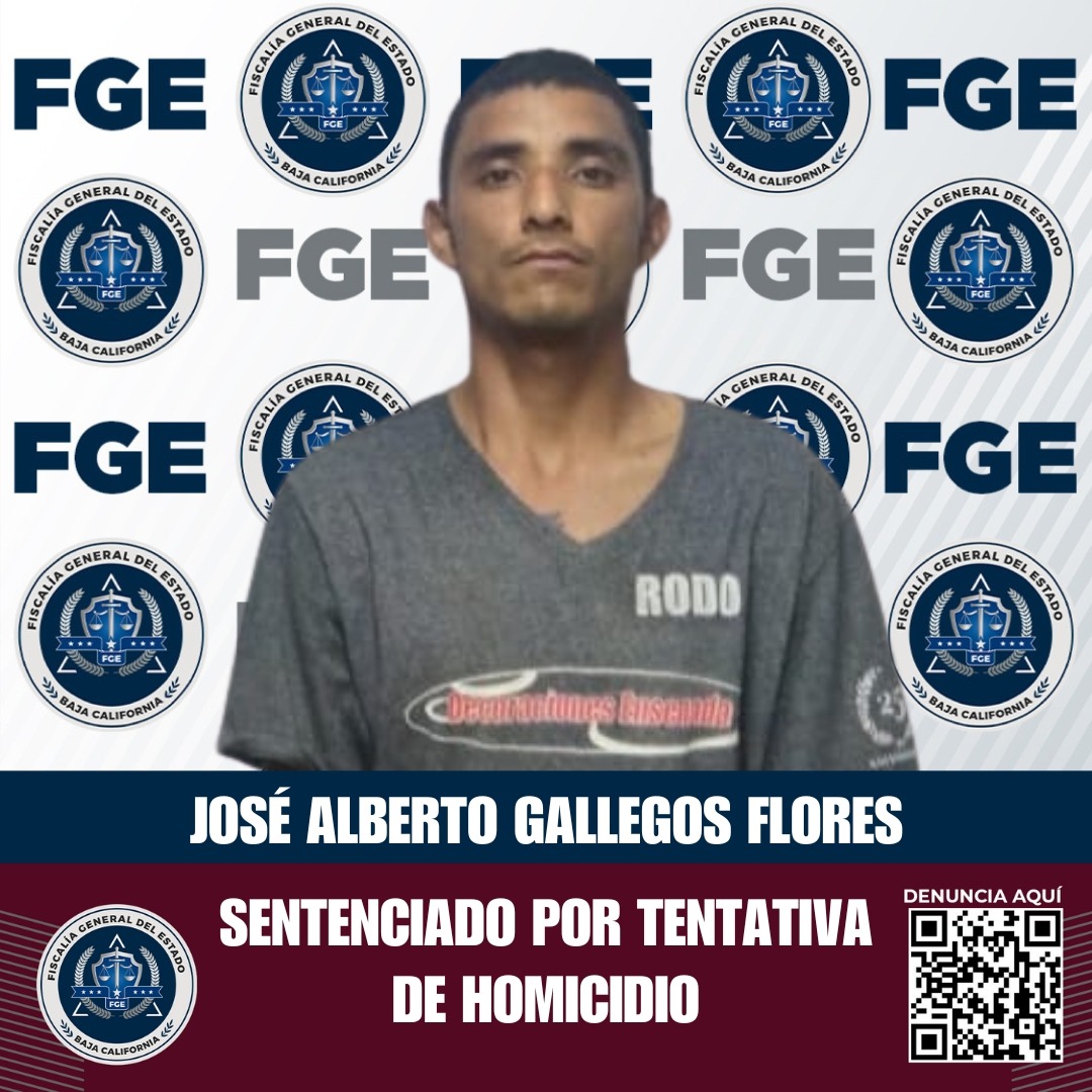 ENSENADA, BAJA CALIFORNIA. - La Fiscalía General del Estado, a través de la Fiscalía Especializada en Delitos contra la Vida, logró una sentencia condenatoria de 13 años y cuatro meses de prisión en contra de José Alberto Gallegos Flores, alias “El Panfis”, por el delito de homicidio calificado en grado de tentativa.