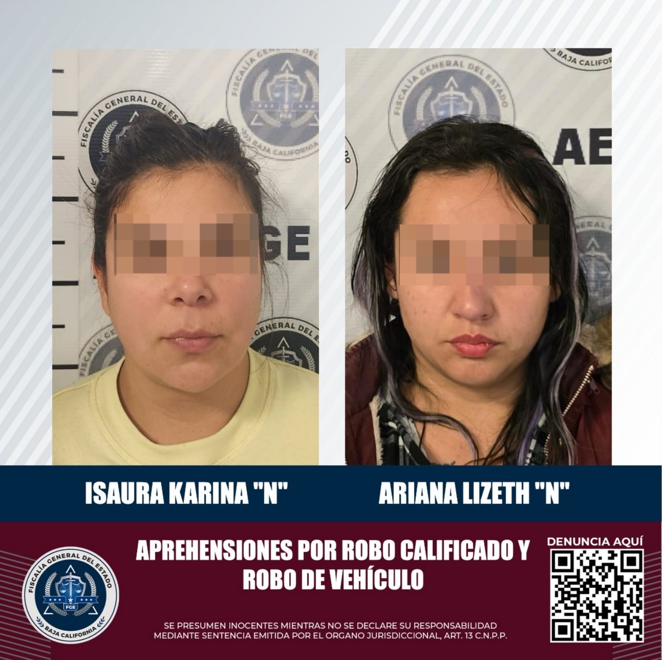 TIJUANA, BAJA CALIFORNIA. - La Fiscalía General del Estado de Baja California, a través de la Agencia Estatal de Investigación (AEI) en la Zona Tijuana, informa sobre la detención de dos mujeres, lograda en distintas acciones, debido a que contaban con órdenes de aprehensión.