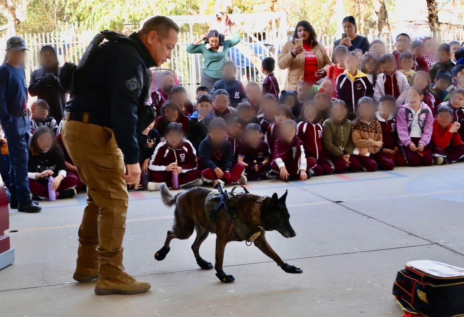 El acercamiento se realizó con la presencia de 380 niñas y niños de la Escuela Primaria Manuel Márquez de León, ubicada en la colonia Lomas de Santa Anita de Tecate, donde asistió el Fiscal Regional de Tecate, Genaro Adrián Guzmán y reiteró la importancia de compartir con las y los menores la labor que realiza la Unidad Canina (K9).